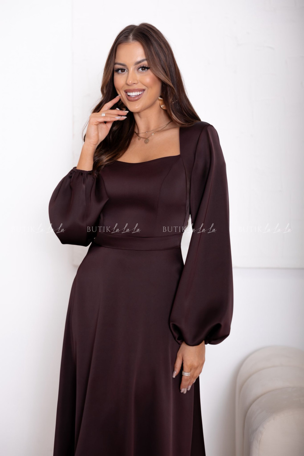 Sukienka satynowa brązowa Camelia