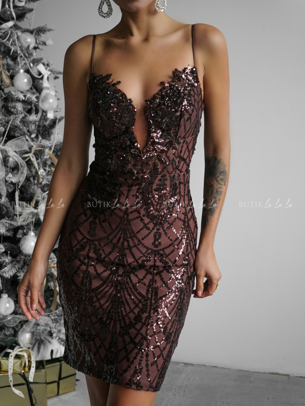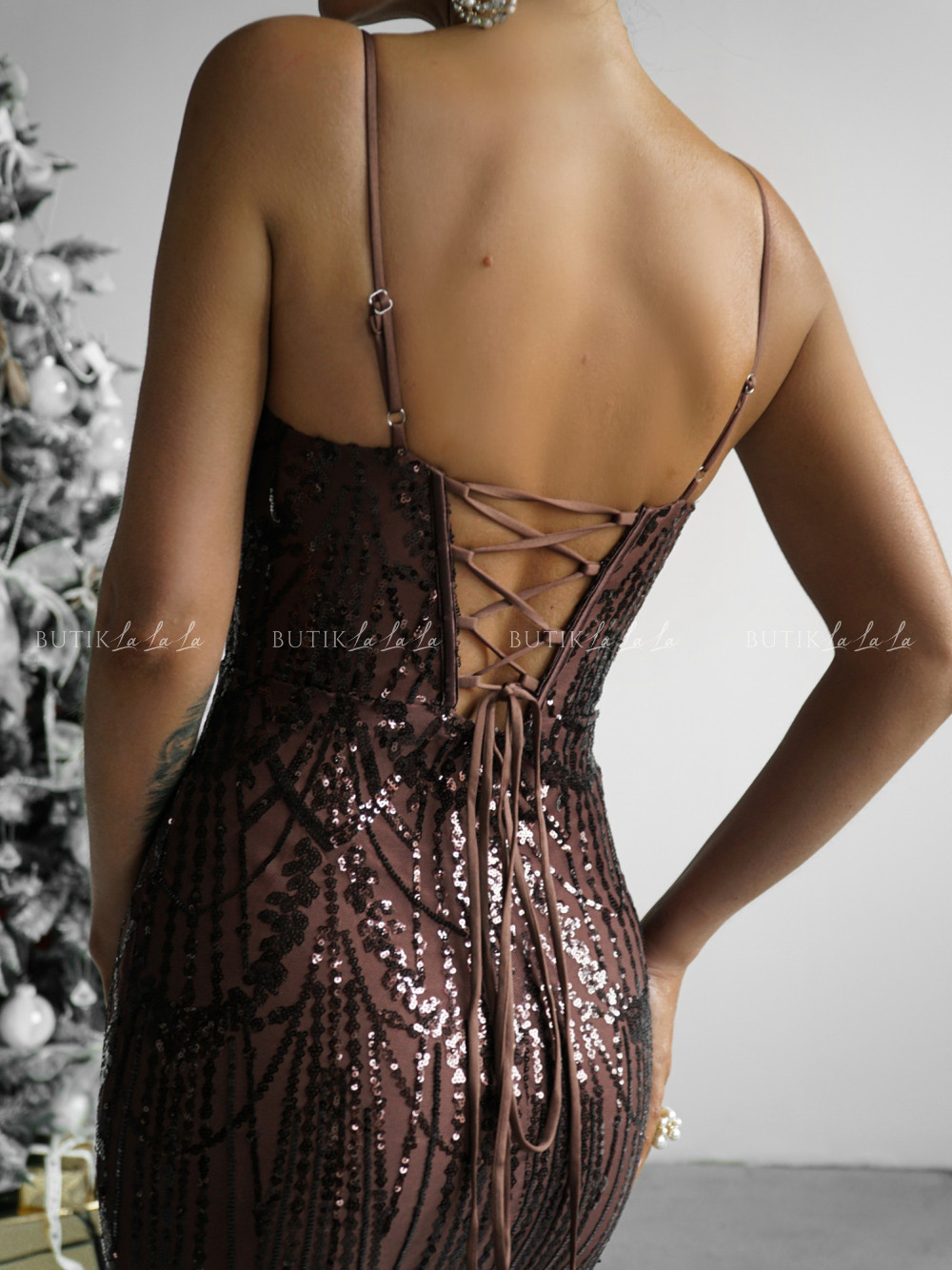 Sukienka cekinowa brązowa Filema