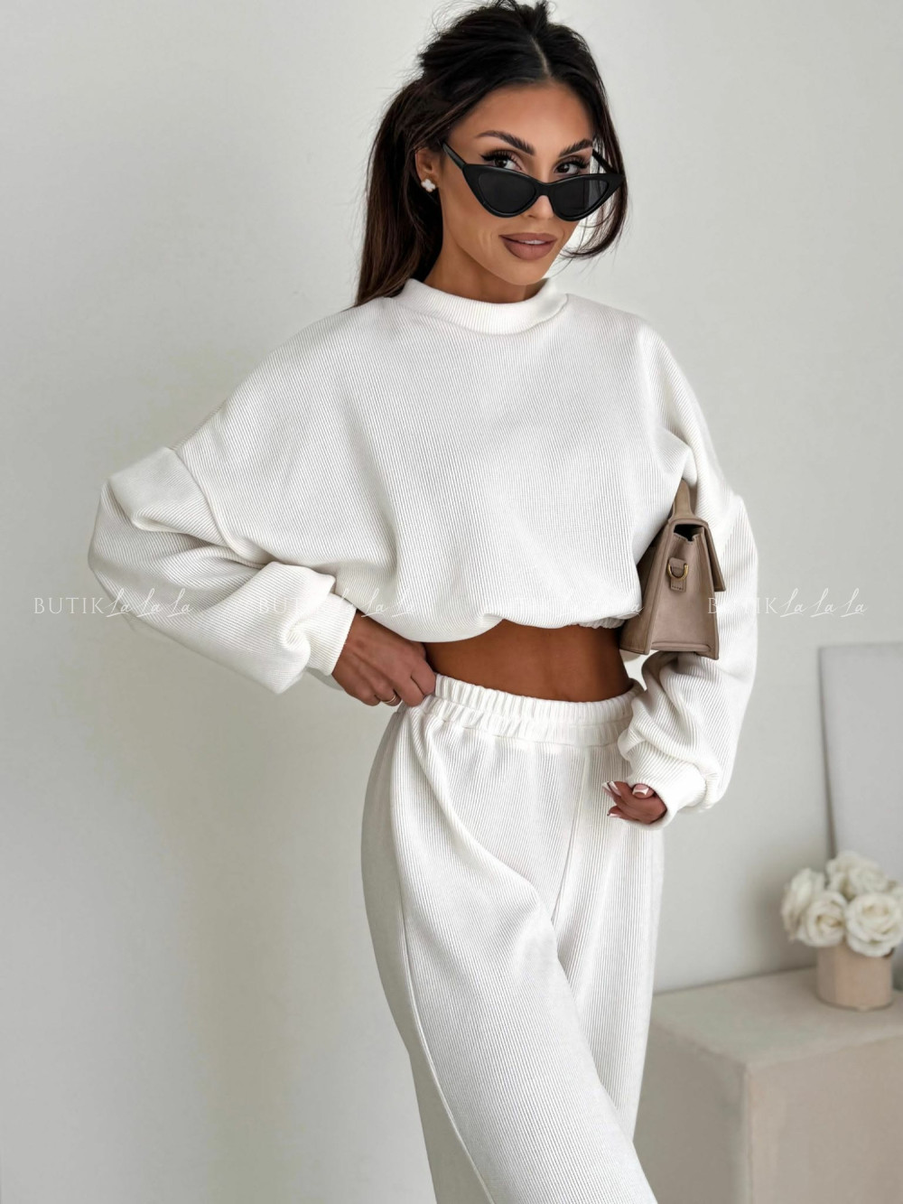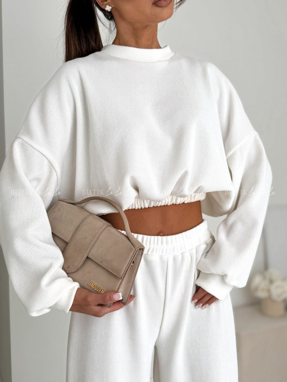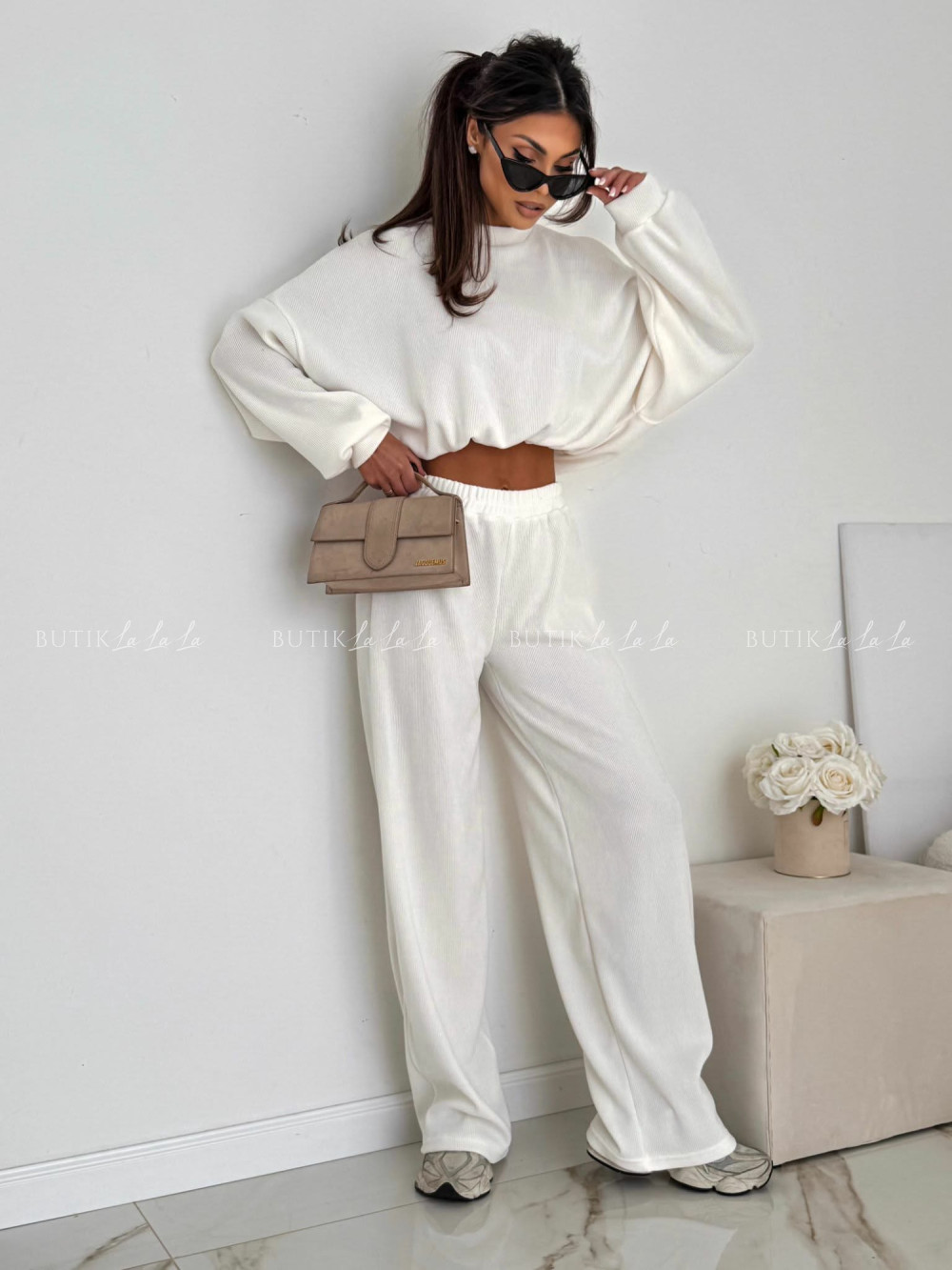 Komplet z miękkiego sztruksu biały Evetta