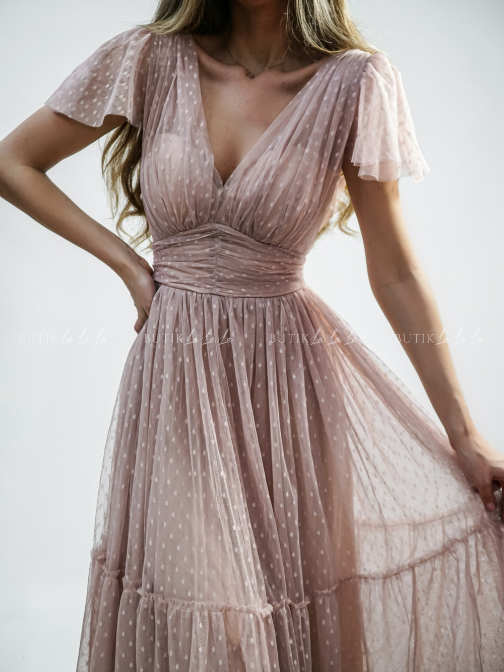 Sukienka midi tiulowa beżowa Kataleja