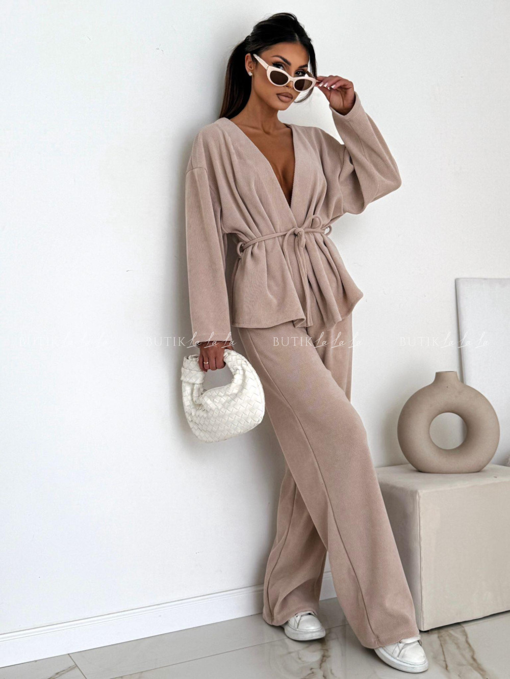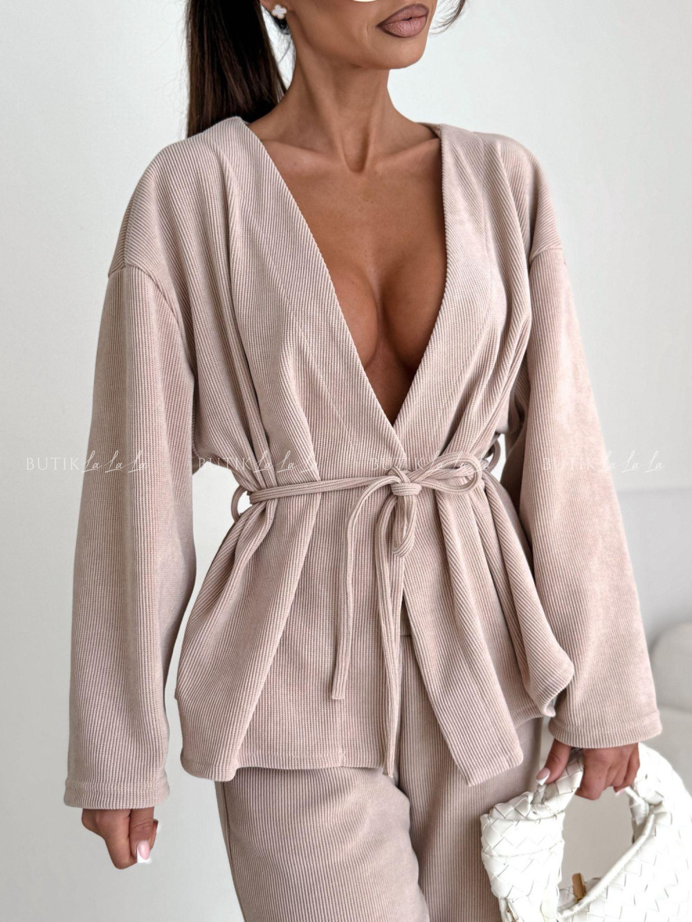 Komplet z miękkiego sztruksu beżowy Glam