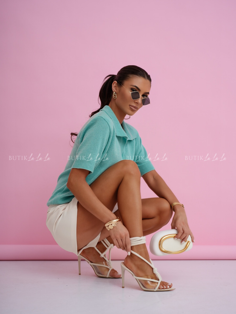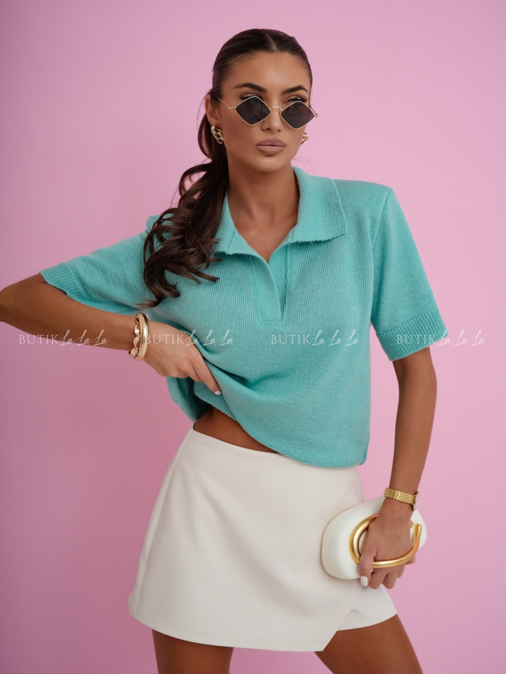 Sweter na krótki rękaw turkusowy Stillo