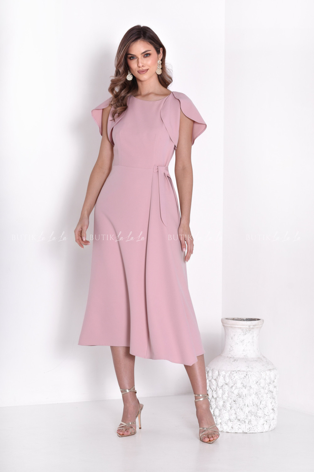 Sukienka rozkloszowana z rękawkiem pudrowa Ofrelia
