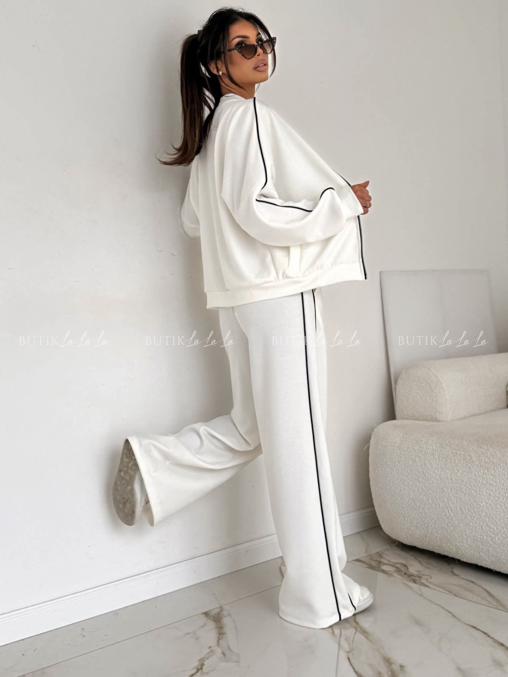 Modelka ma 170cm wzrostu, prezentuje rozmiar Uni