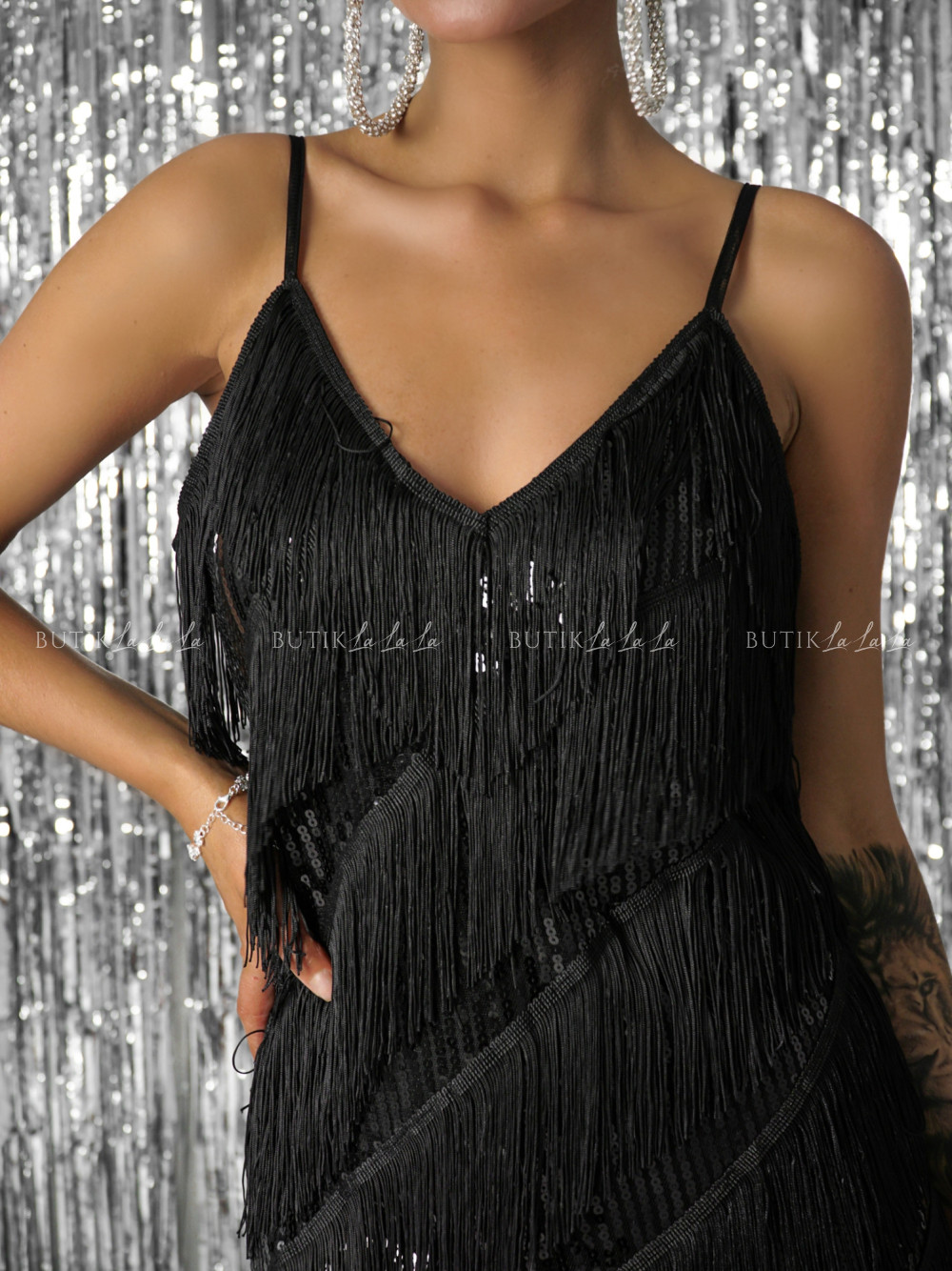 Przepiękna, imprezowa sukienka cekinowa z frędzlami. Niezwykle charakterystyczny model, który subtelnie podkreśla dekolt. Idealna propozycja na zbliżające się bale, czy sylwester. Zabłyśnij wśród znajomych i wybierz właśnie ten model.