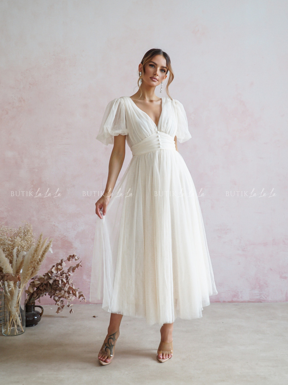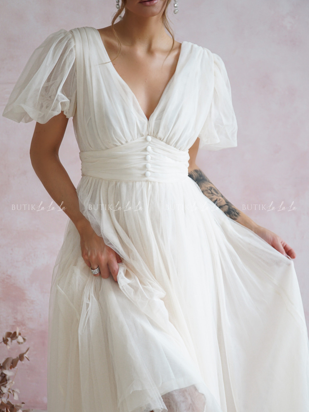 sukienka kremowa tiulowa Murillo