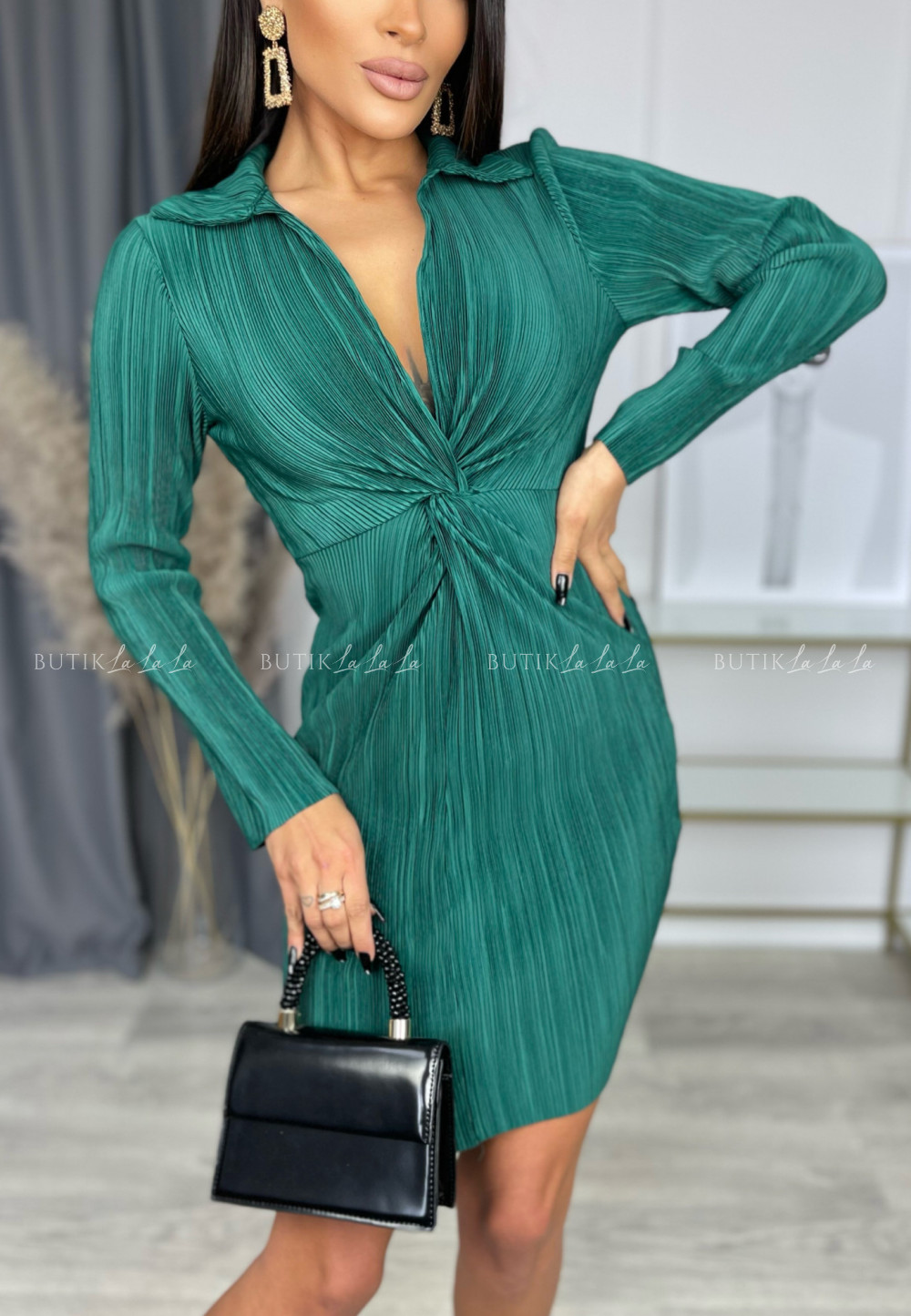 Sukienka z marszczeniem butelkowa zieleń Shaya