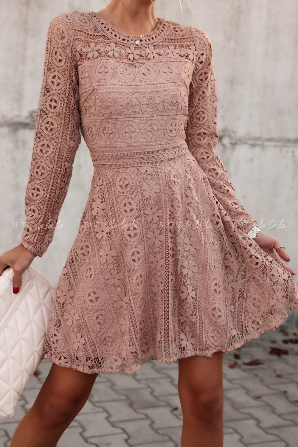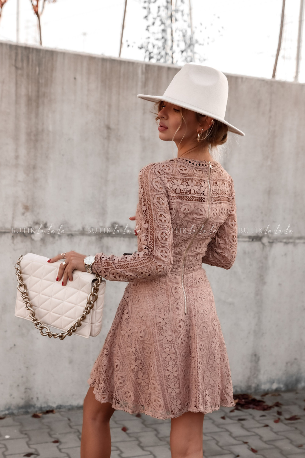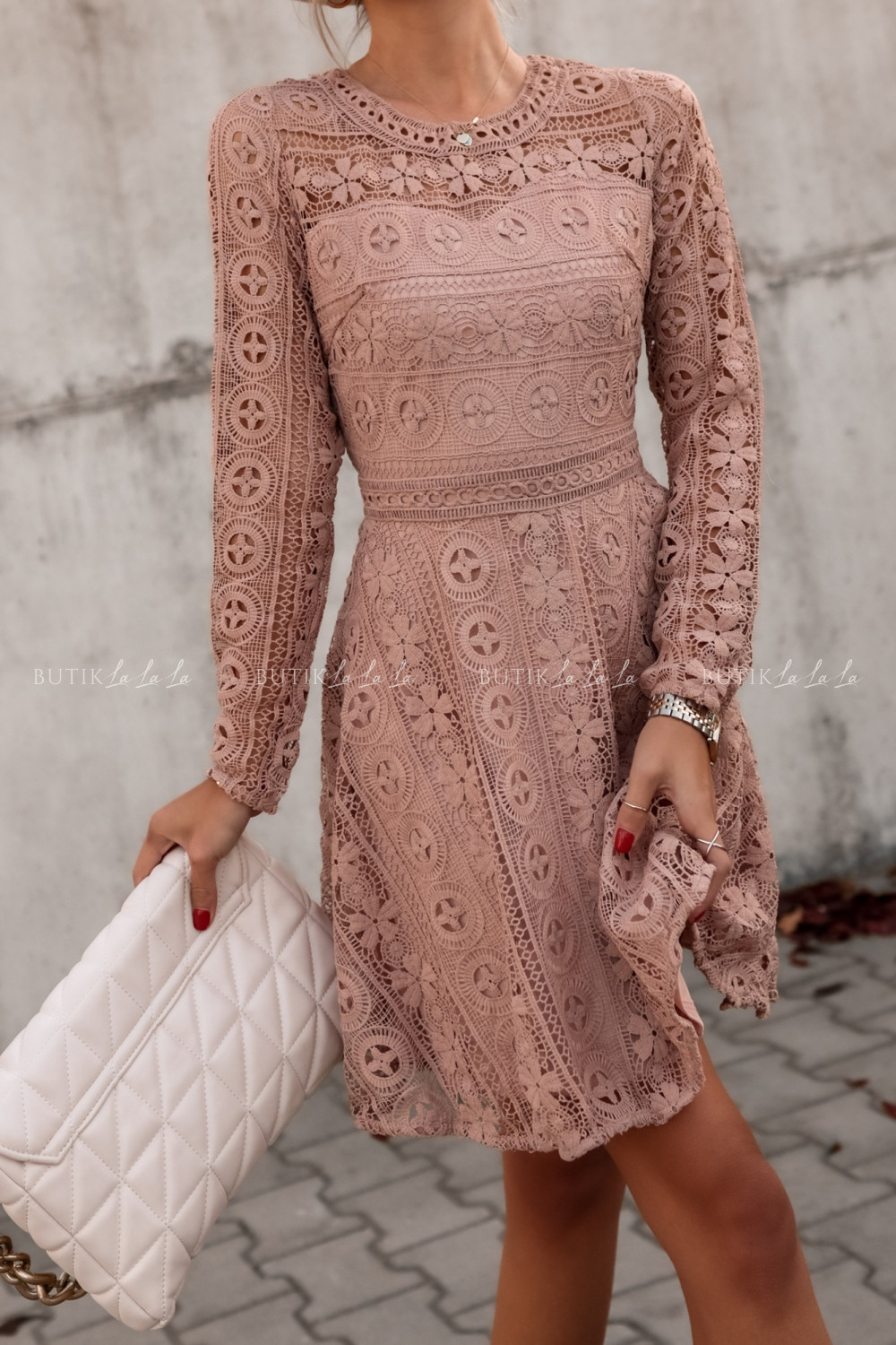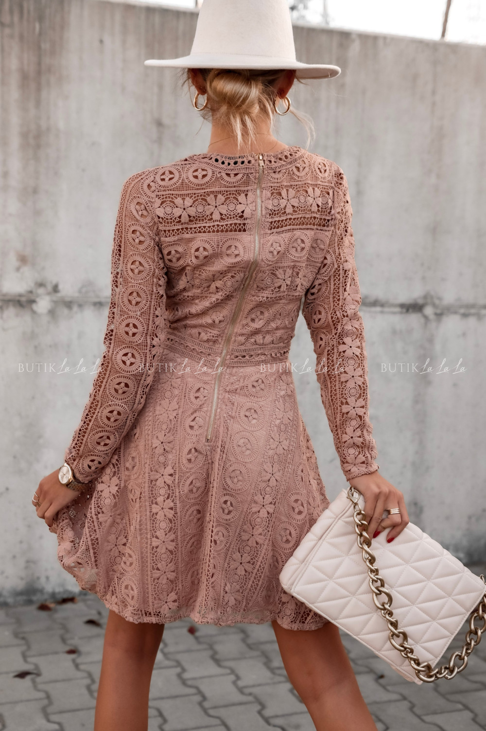 Sukienka gipiurowa beżowa Major