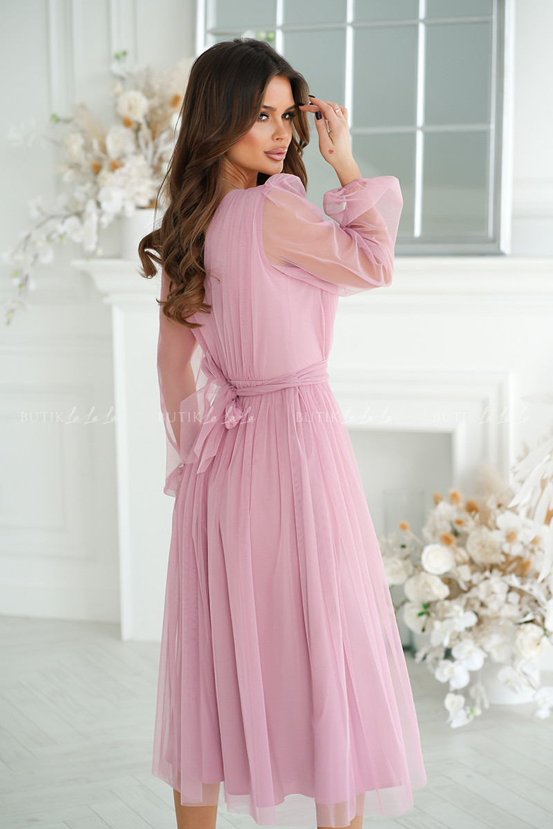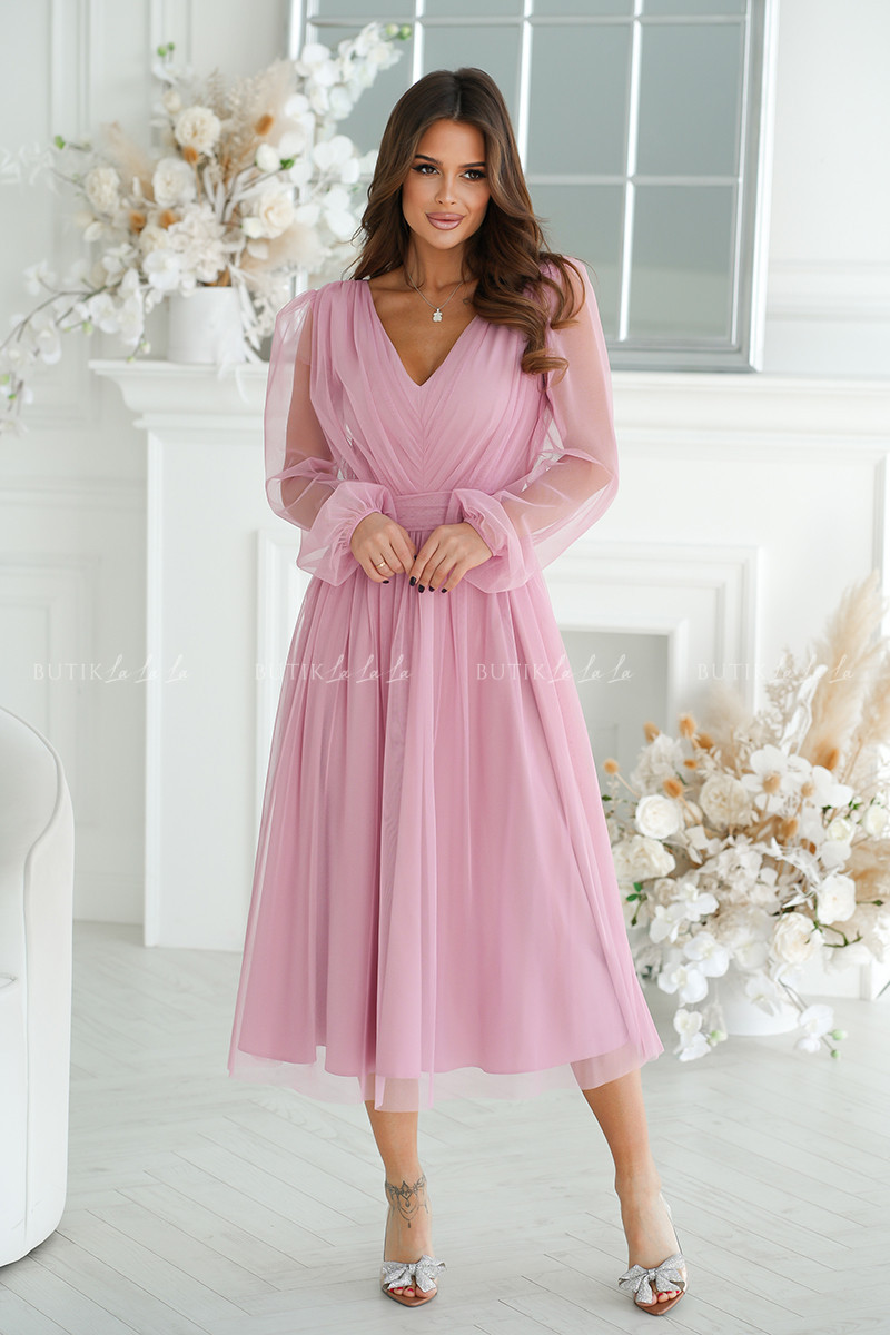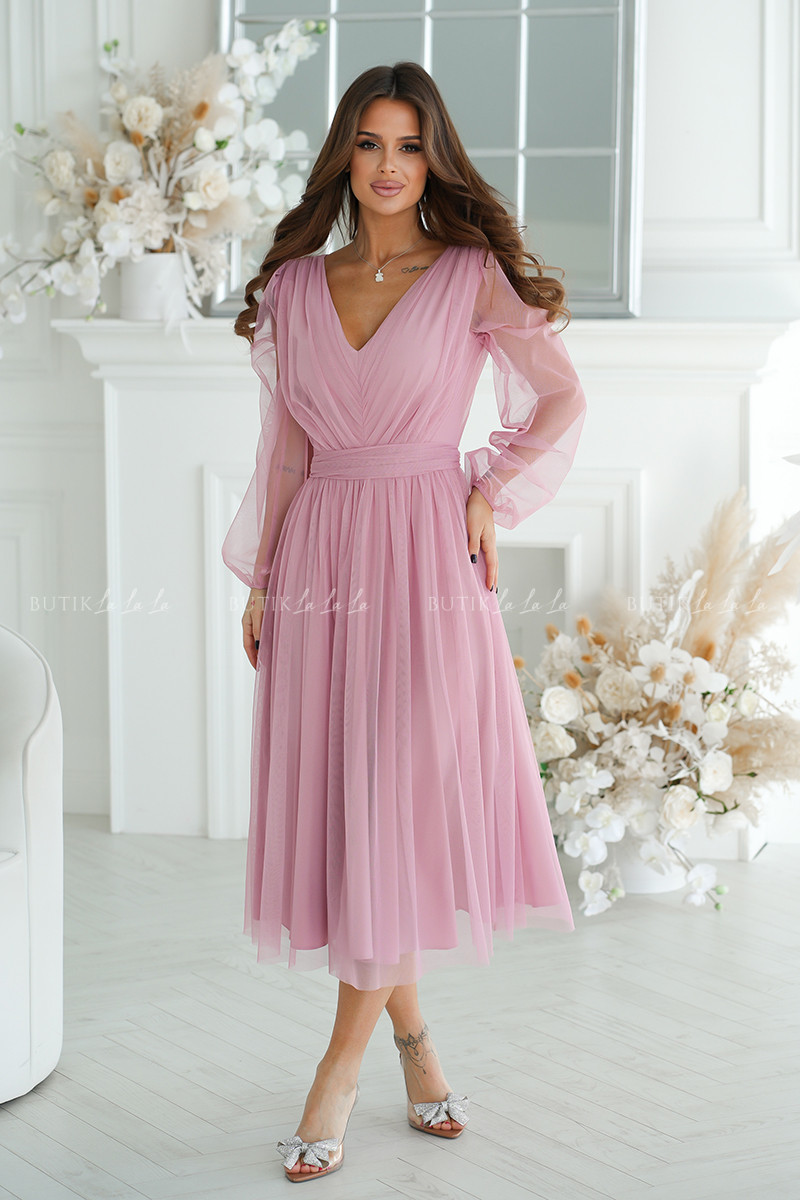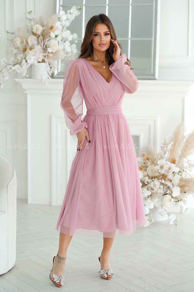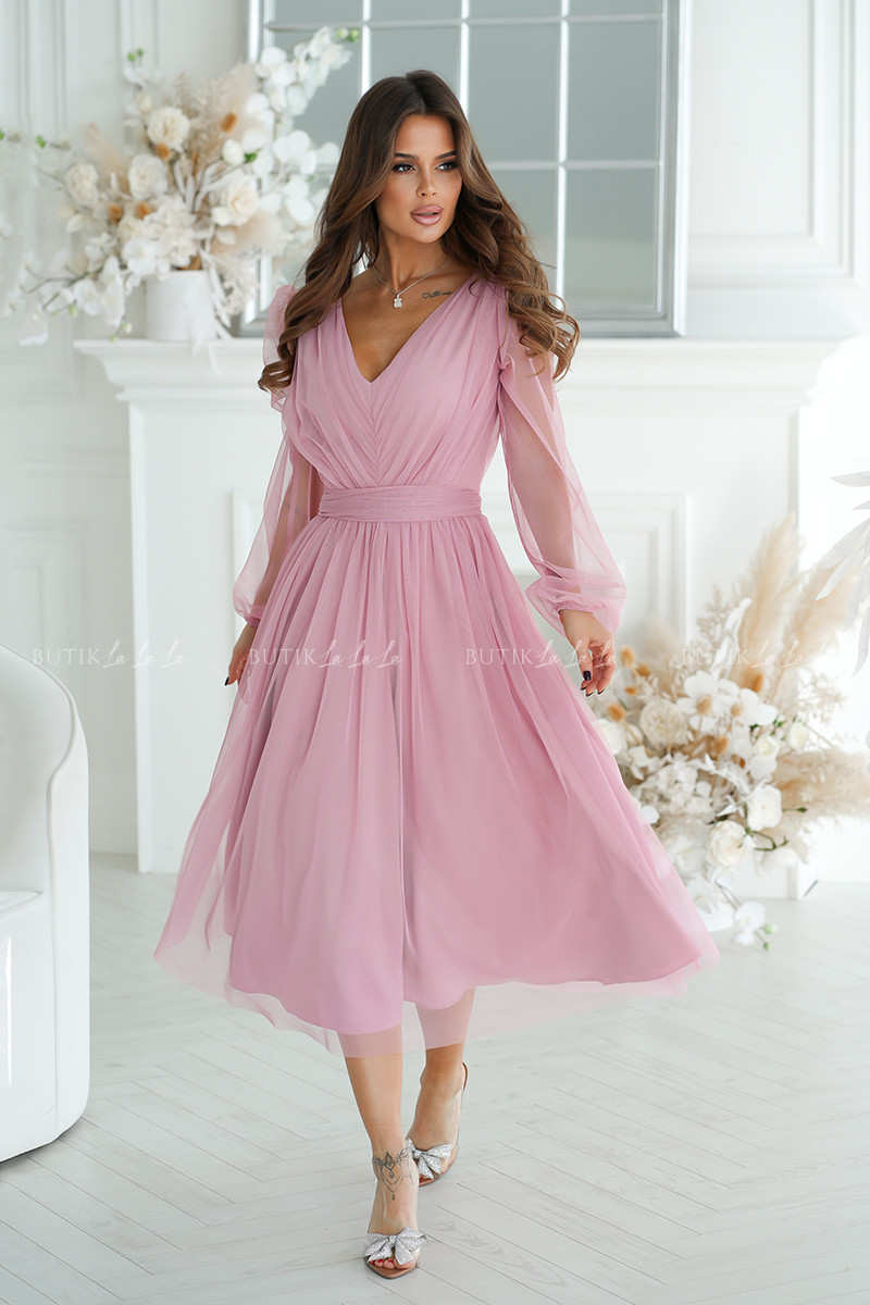 sukienka pudrowa midi z połyskującą siateczką Vanessa