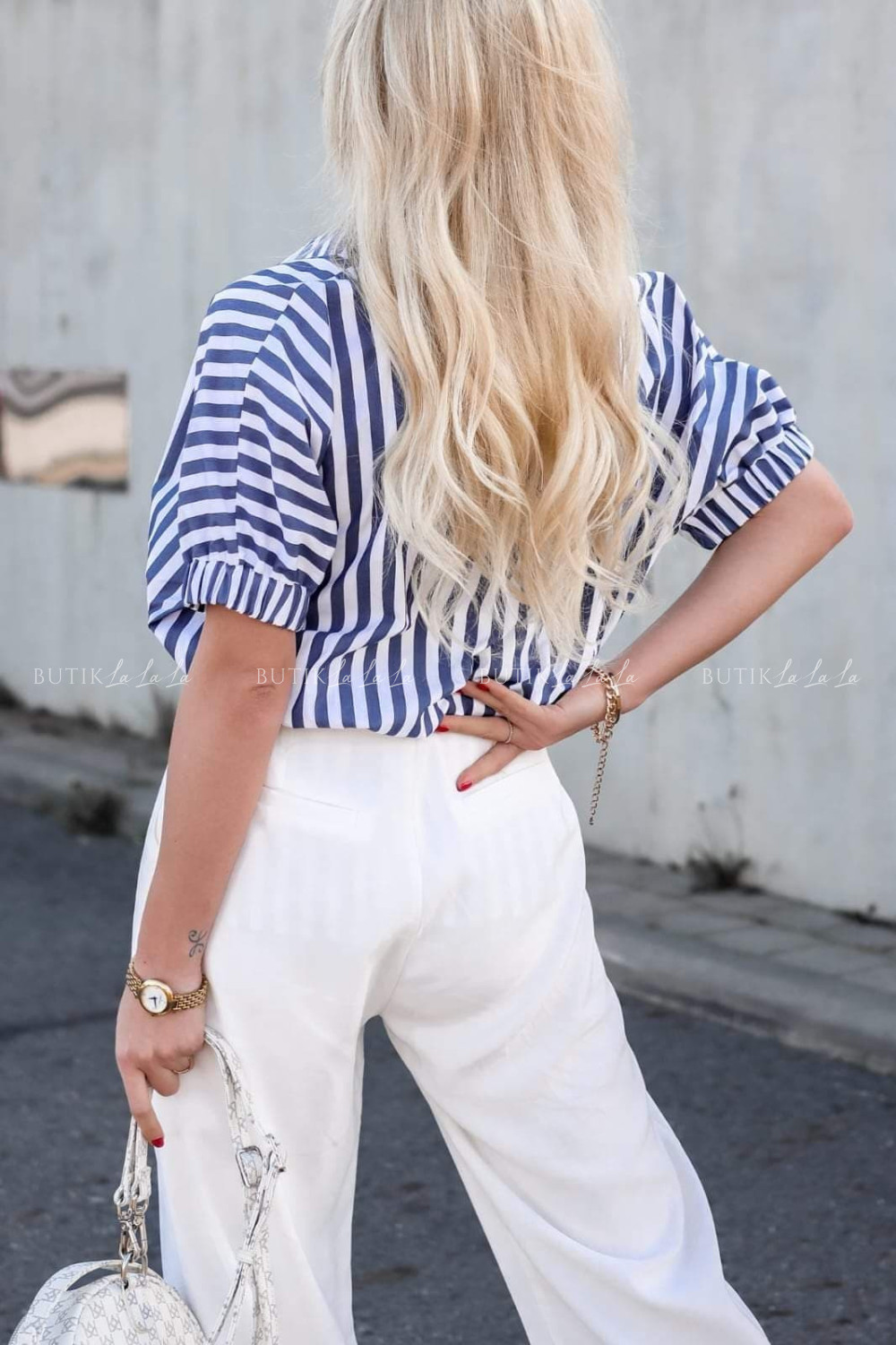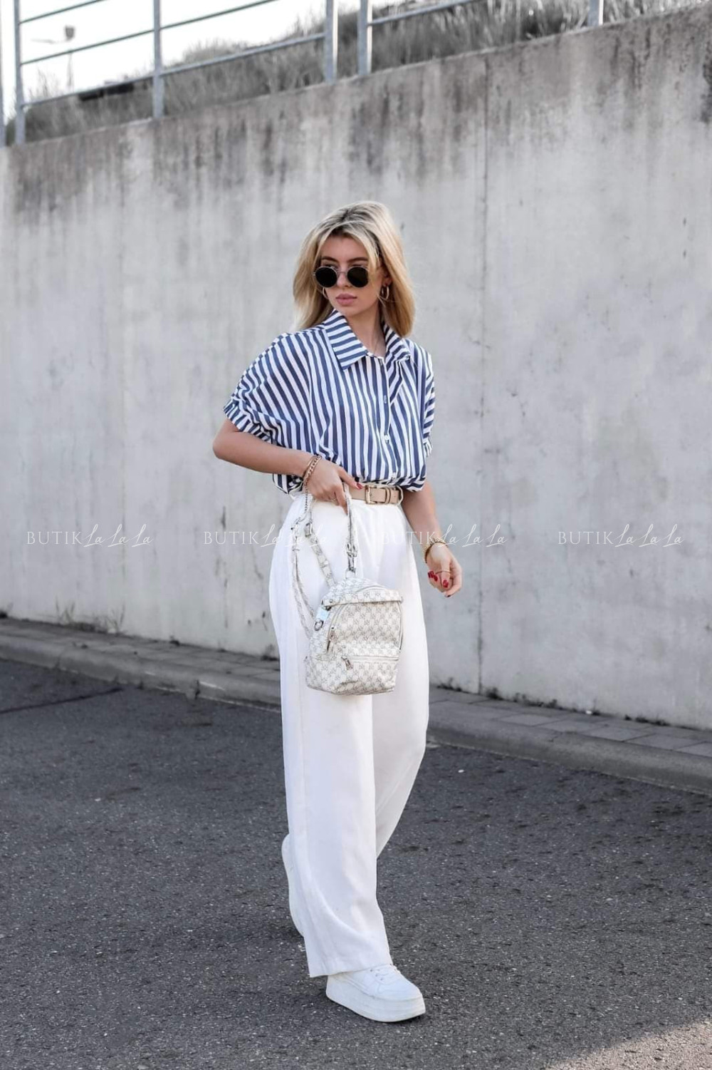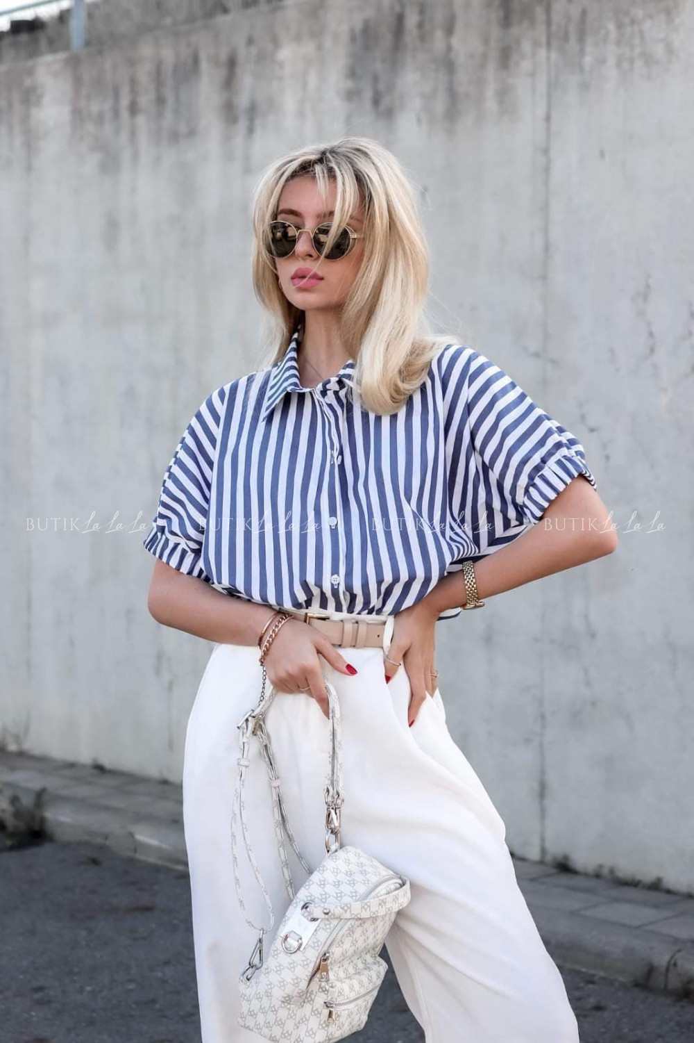 Koszula oversize na krótki rękaw niebieska w paski Ashera