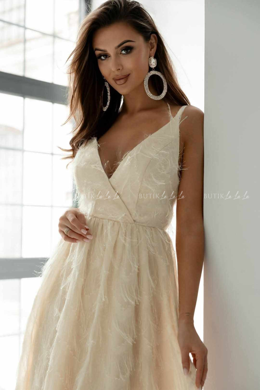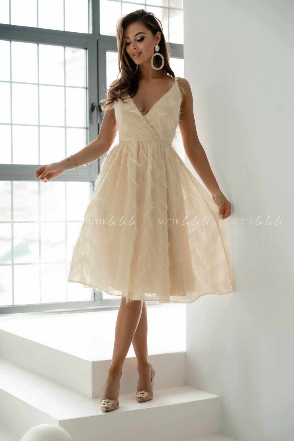 Sukienka kremowa z połyskującymi nitkami Maeve