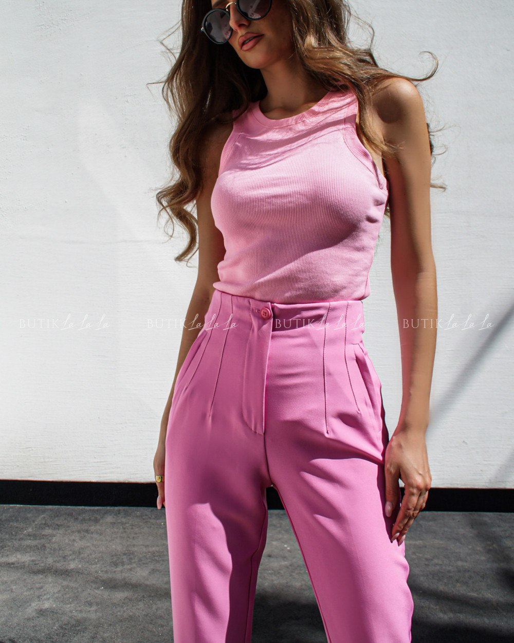 Bluzka prążkowana na ramiączka różowa Occa
