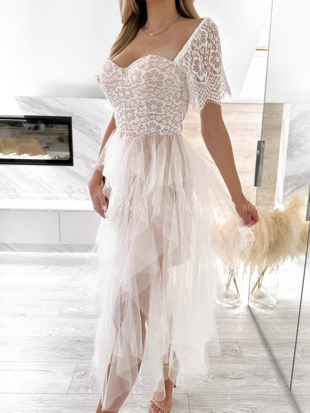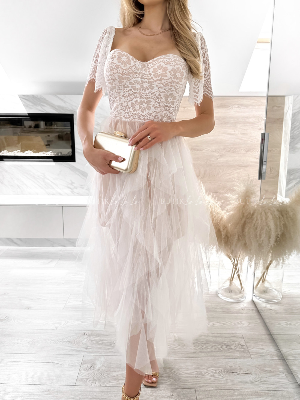 sukienka pudrowa koronkowa Versi