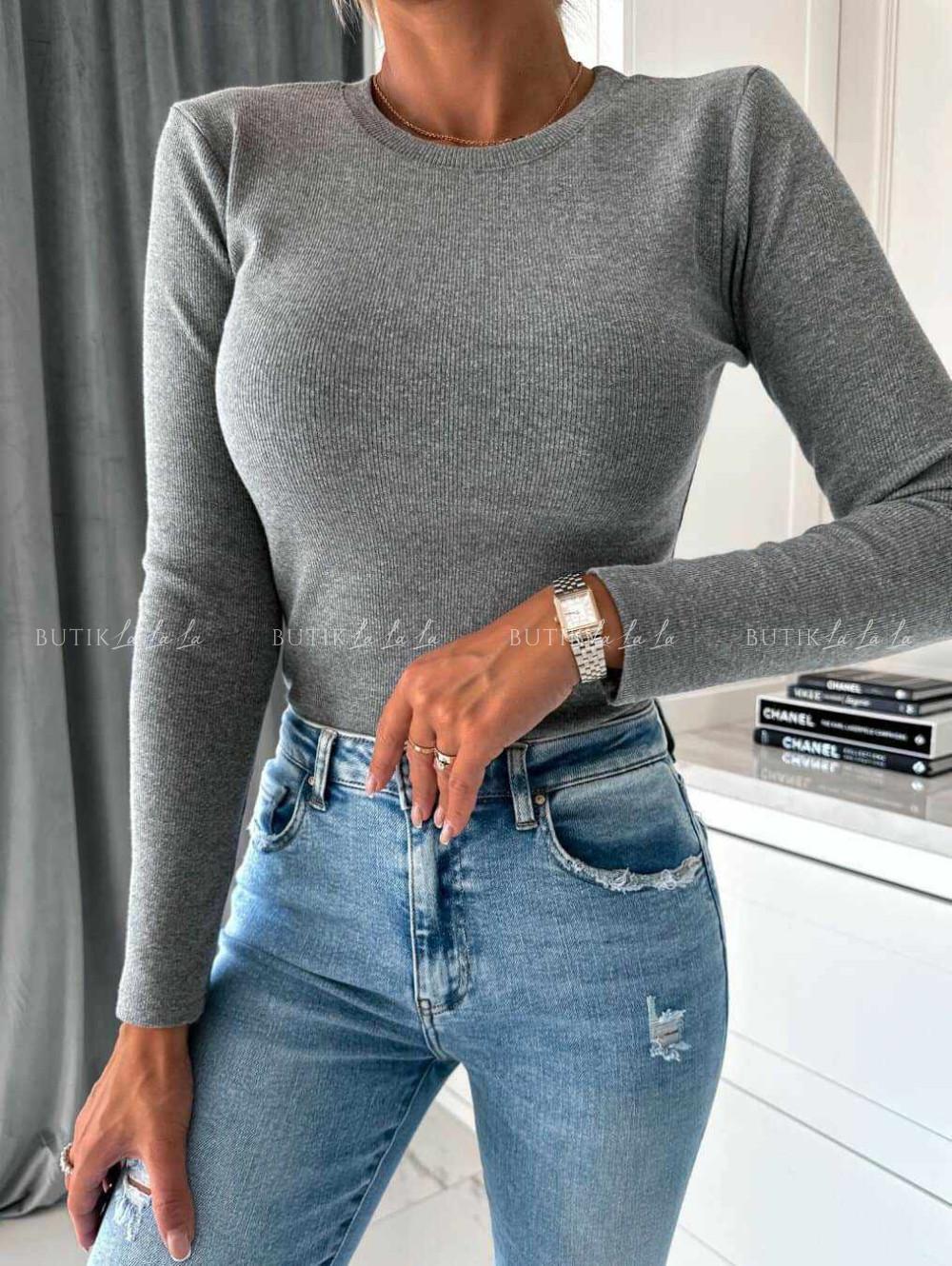 Bluzka prążkowana bawełniana ciemno szara Micca