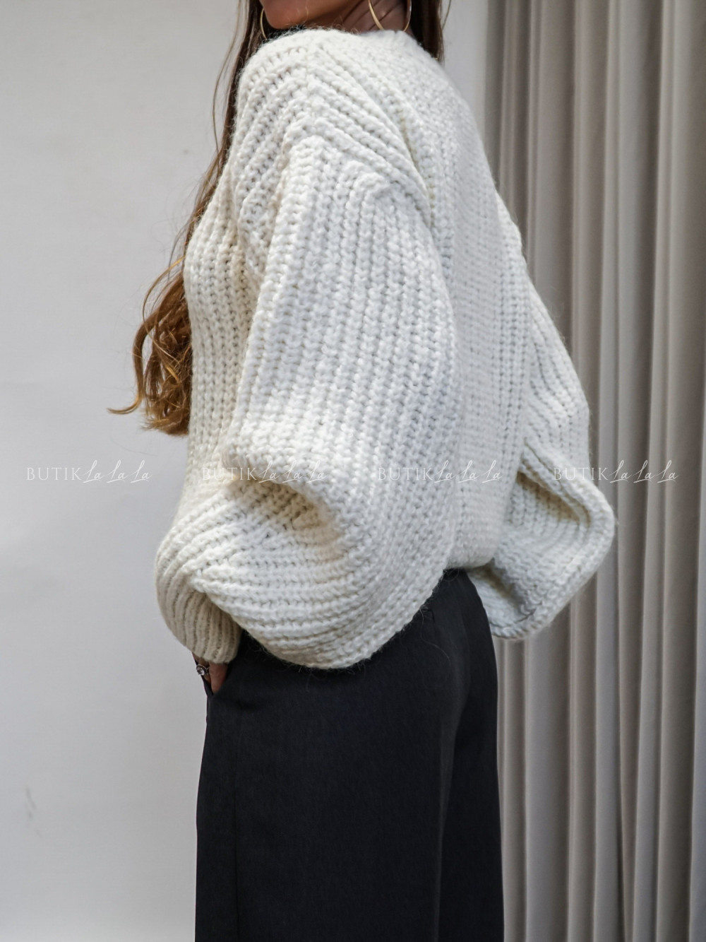 Sweter o grubszym splocie kremowy Jawor