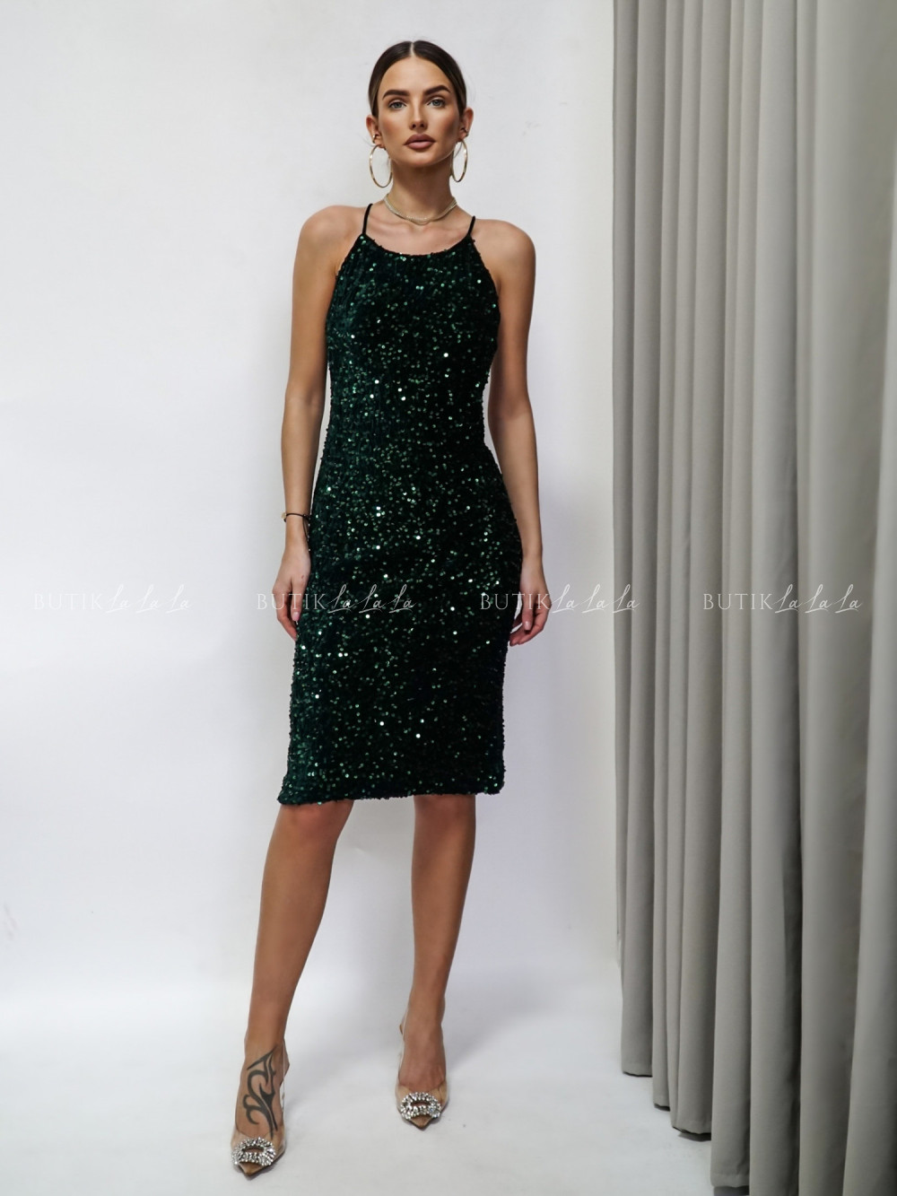 Sukienka cekinowa z odkrytymi plecami ciemno zielona Maribel