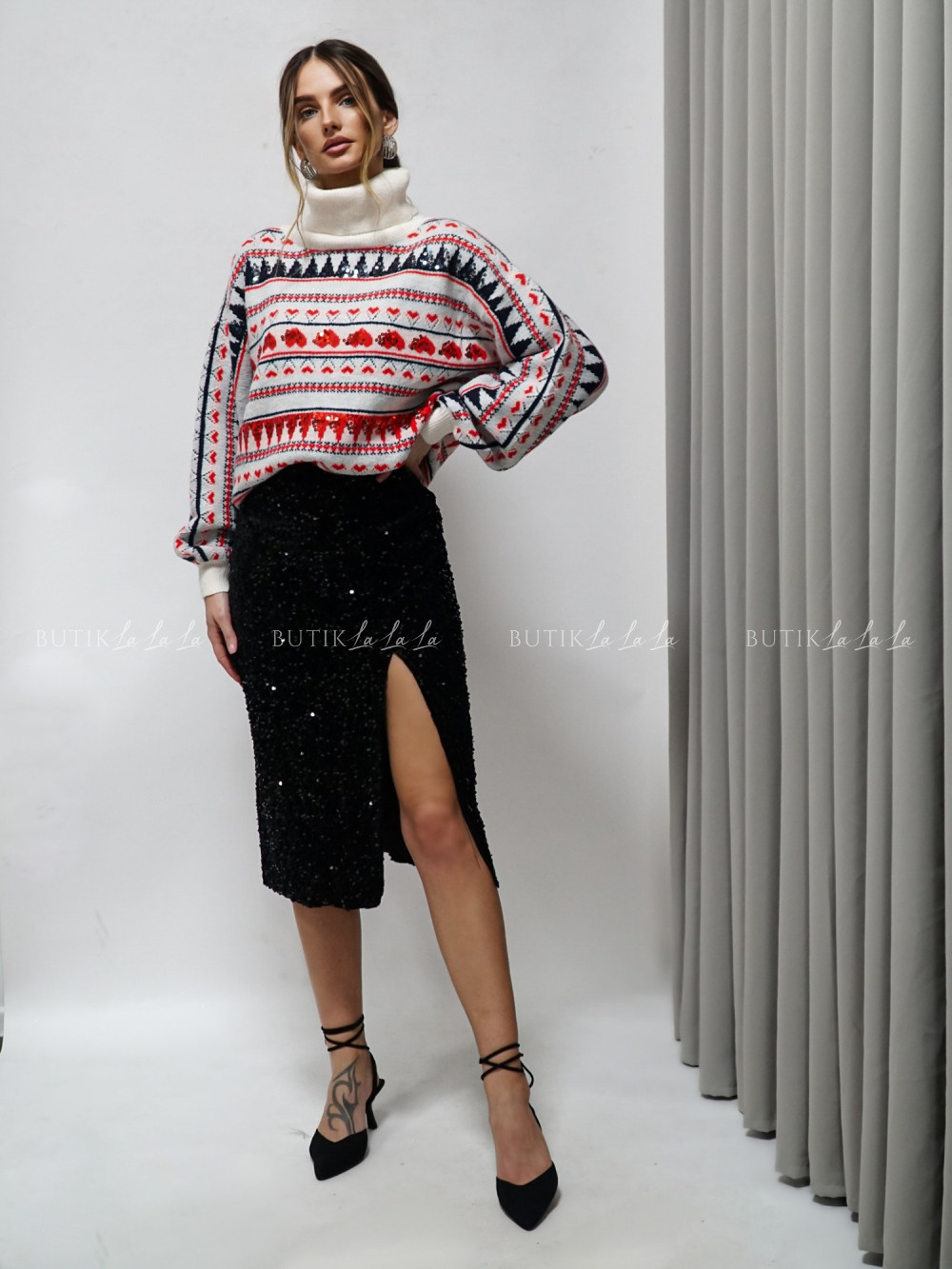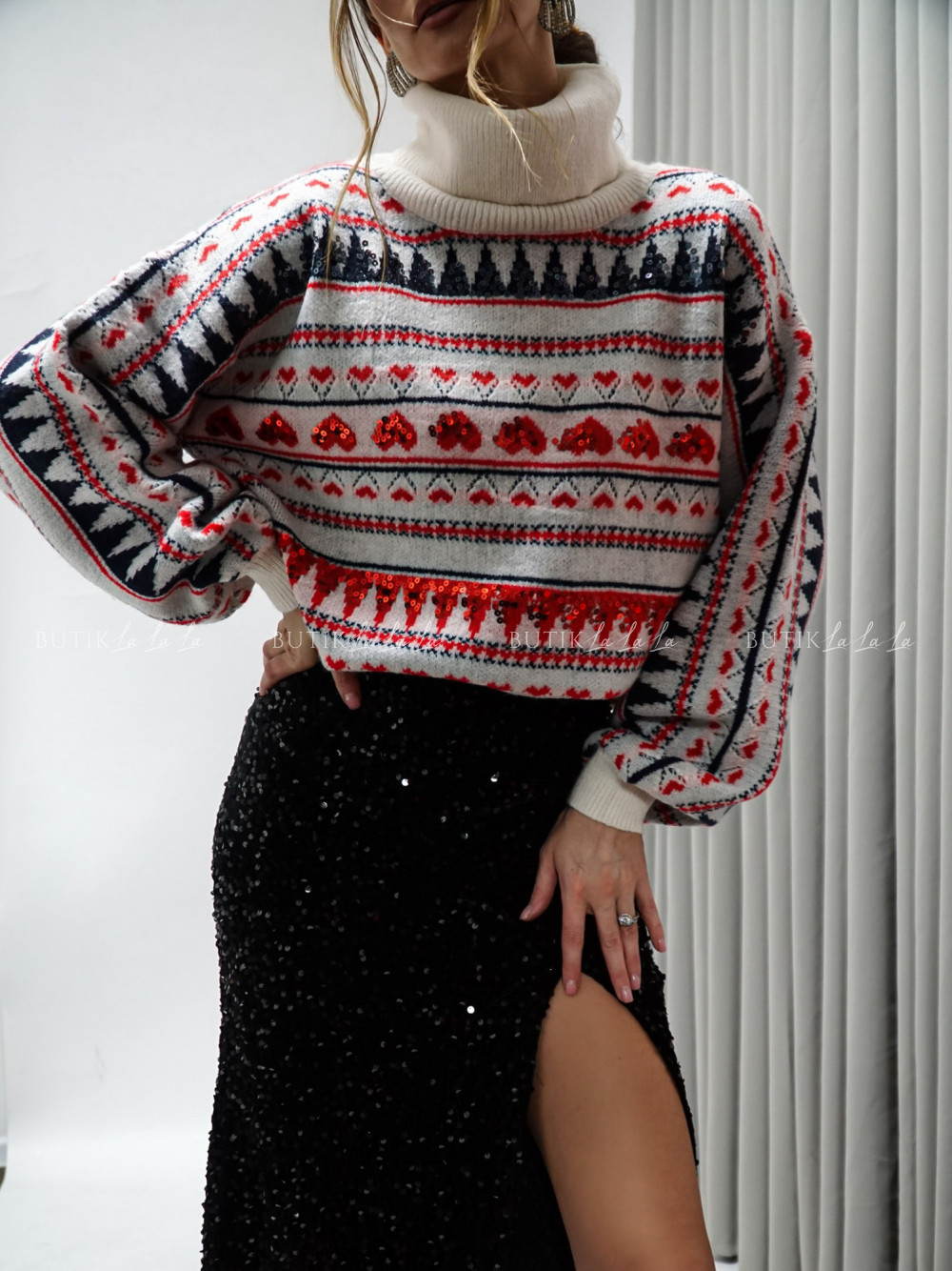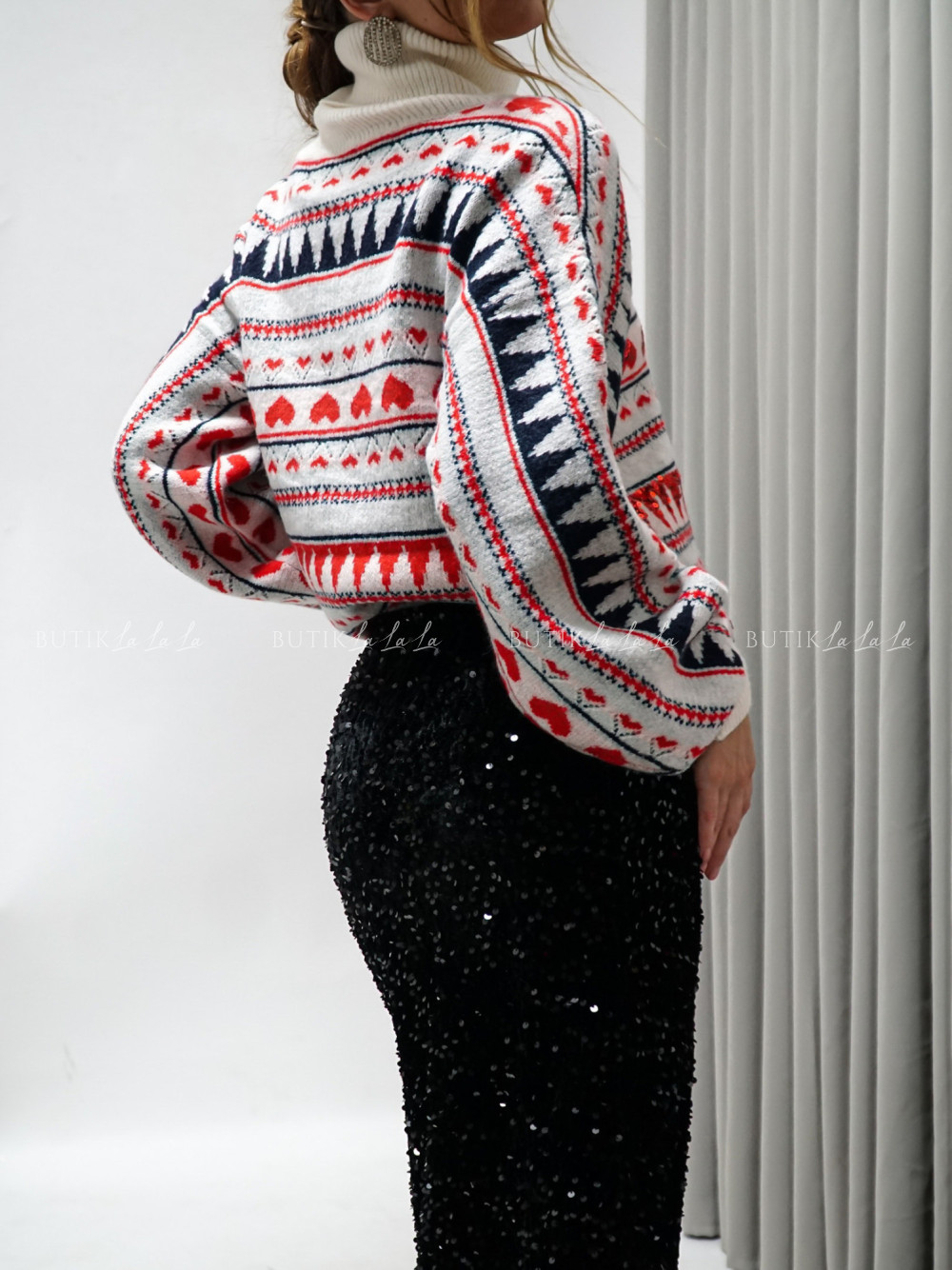 Sweter w kolorowy wzór Claus