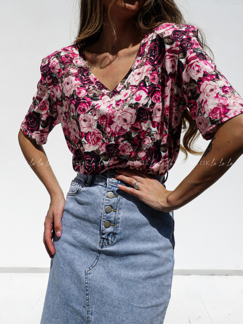 Modelka ma 170 cm wzrostu, prezentuje rozmiar XS/34
