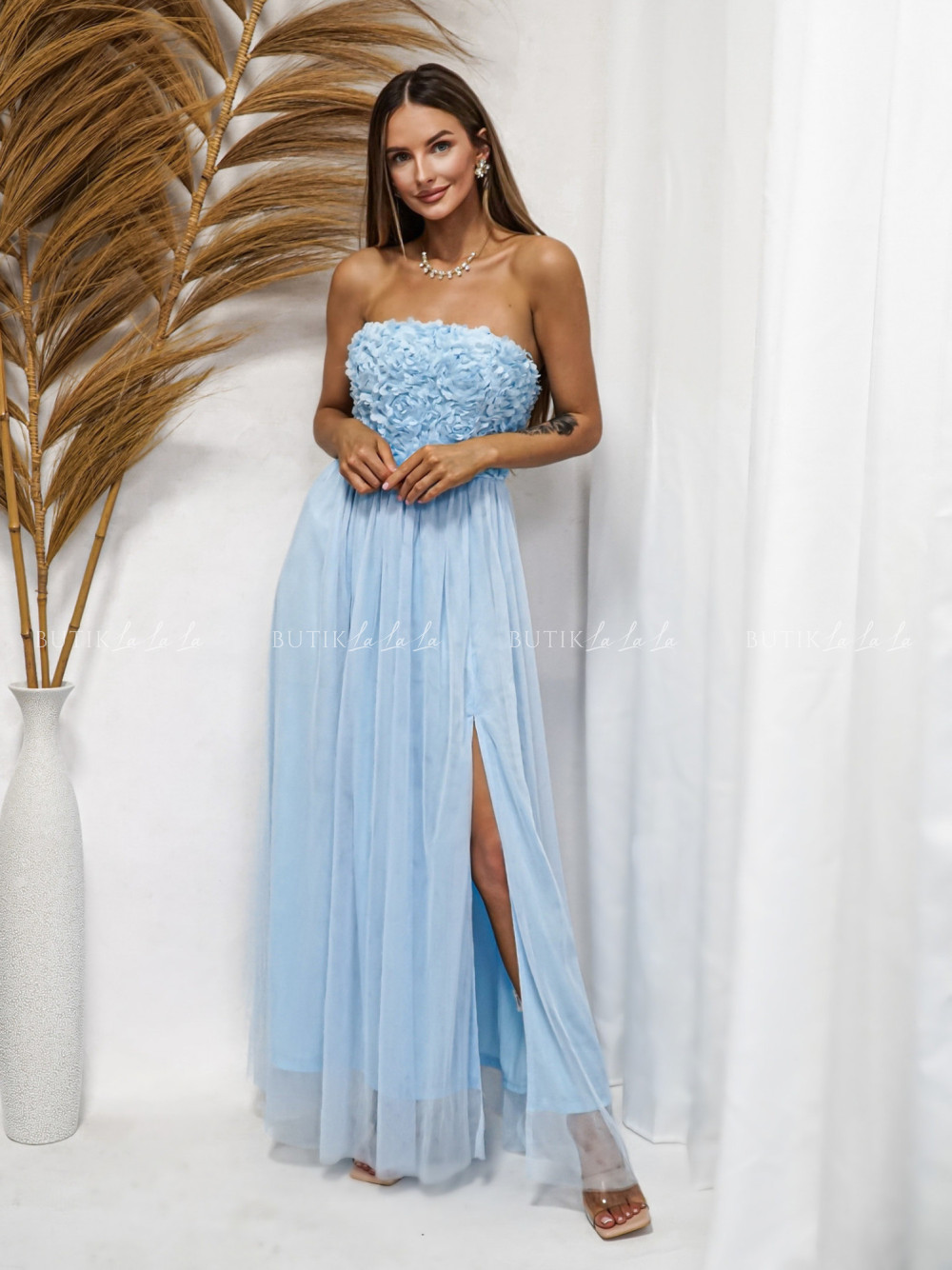 Sukienka maxi z tiulowym dołem błękitna Felicja