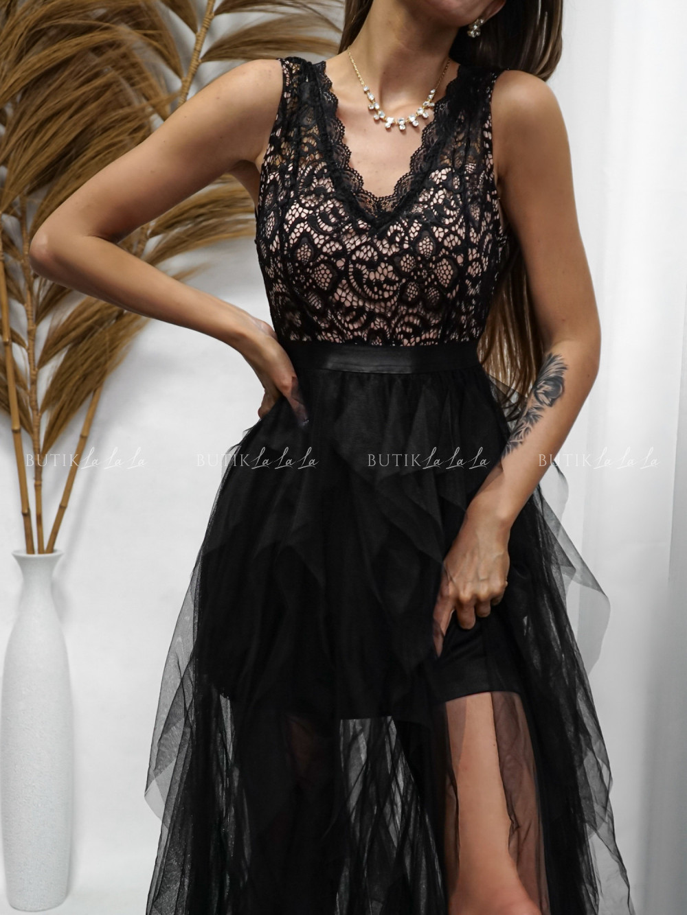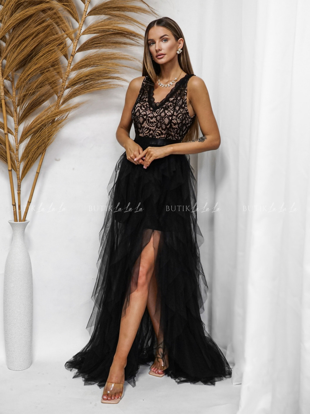 Sukienka maxi czarno beżowa Wenus