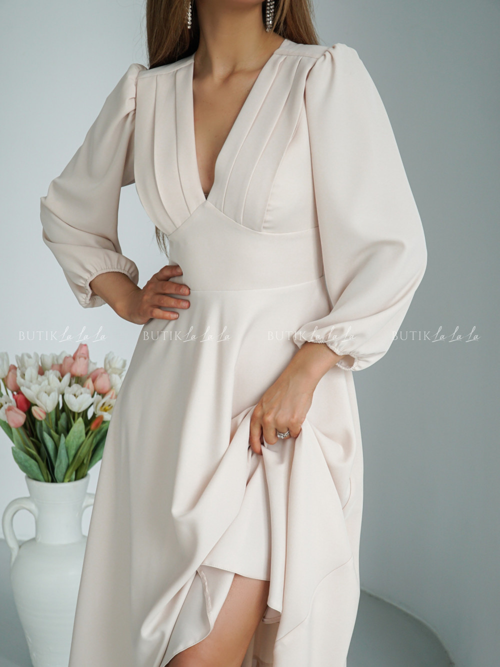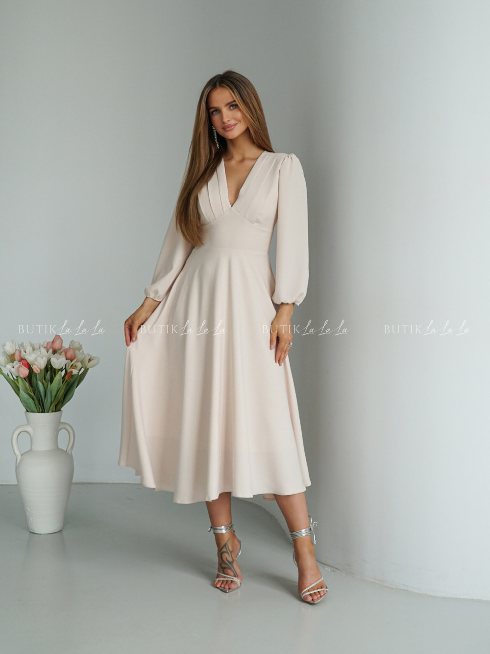 Sukienka midi beżowa Seda