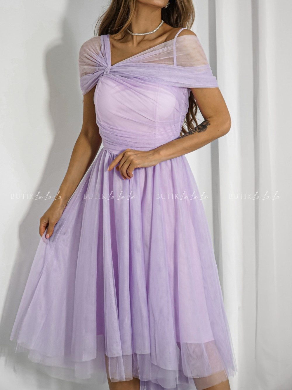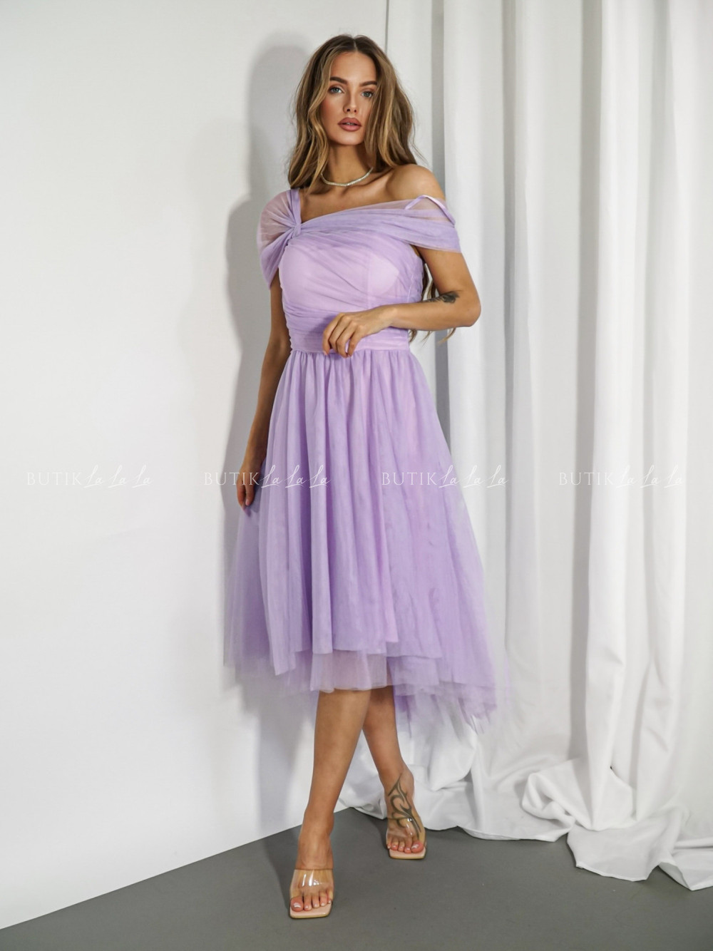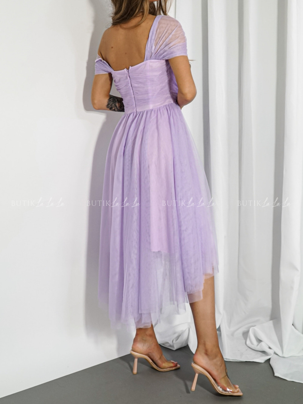 Sukienka tiulowa asymetryczna liliowa Somi