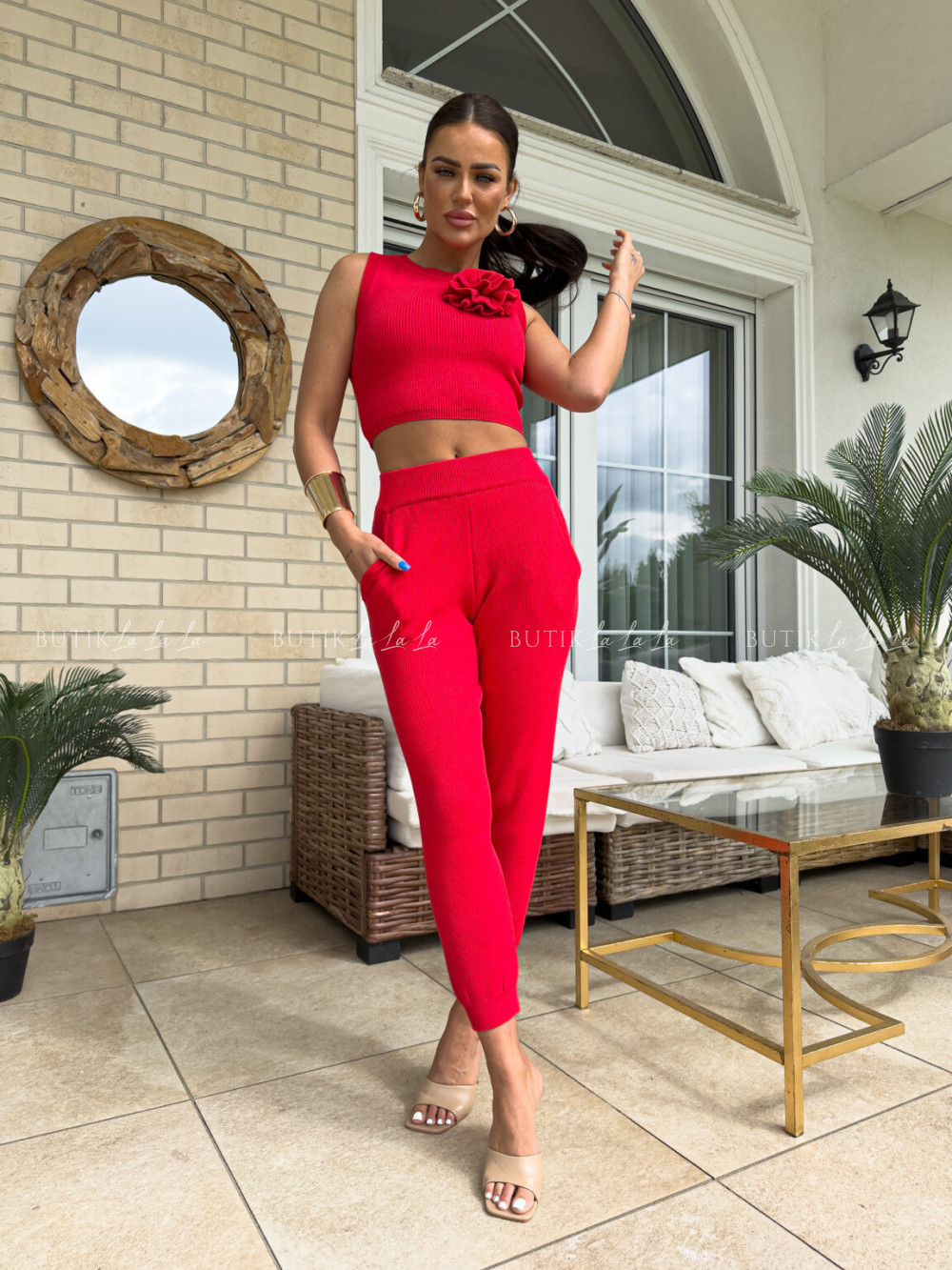Komplet dzianinowy z domieszką kaszmiru czerwony Taus
