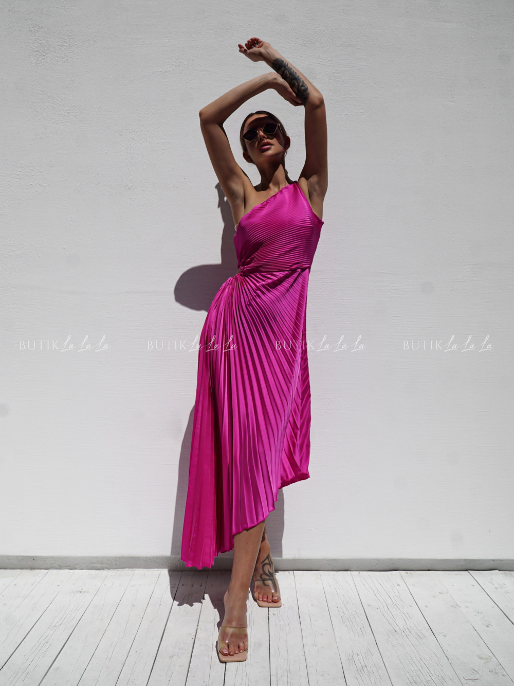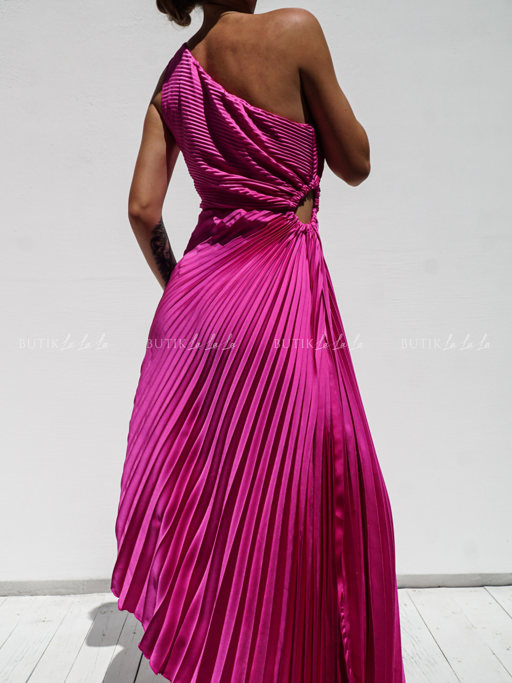 Sukienka plisowana z wycięciem ciemno różowa Albertyna