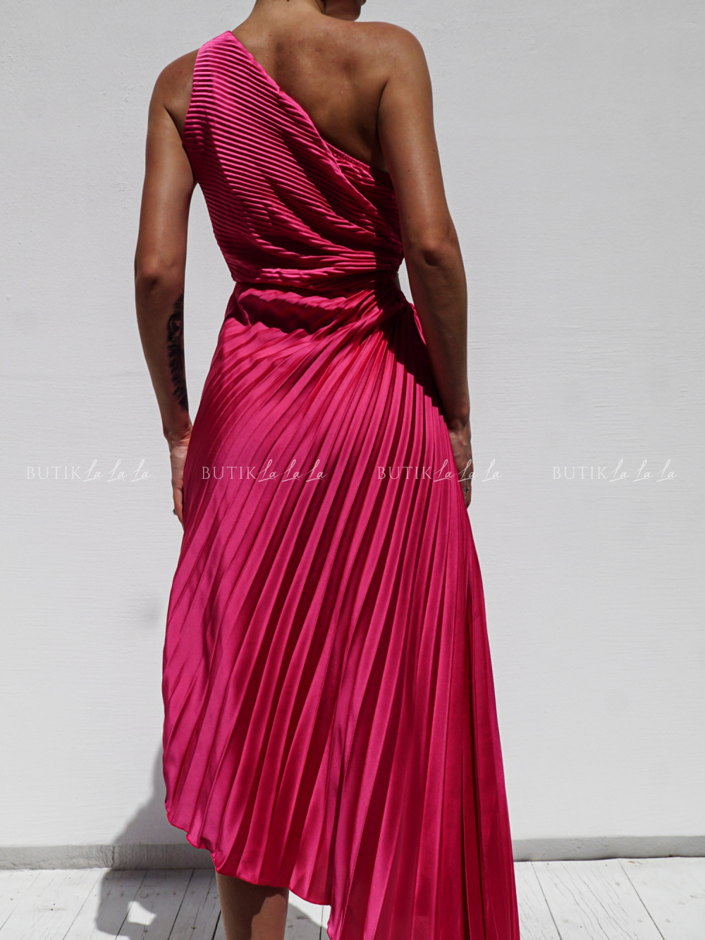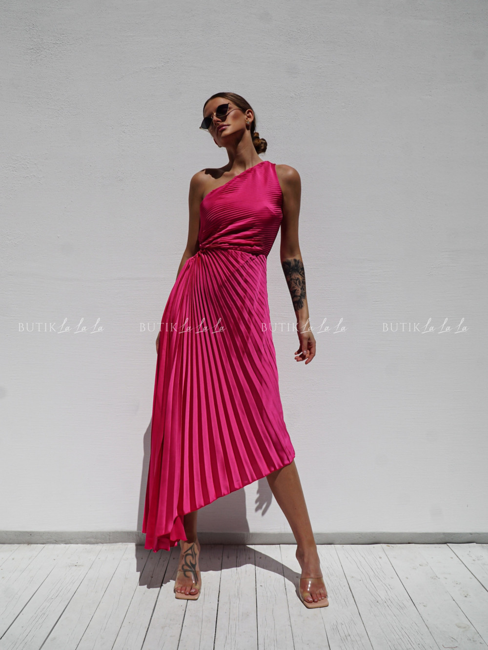 Sukienka plisowana z wycięciem fuksja Albertyna