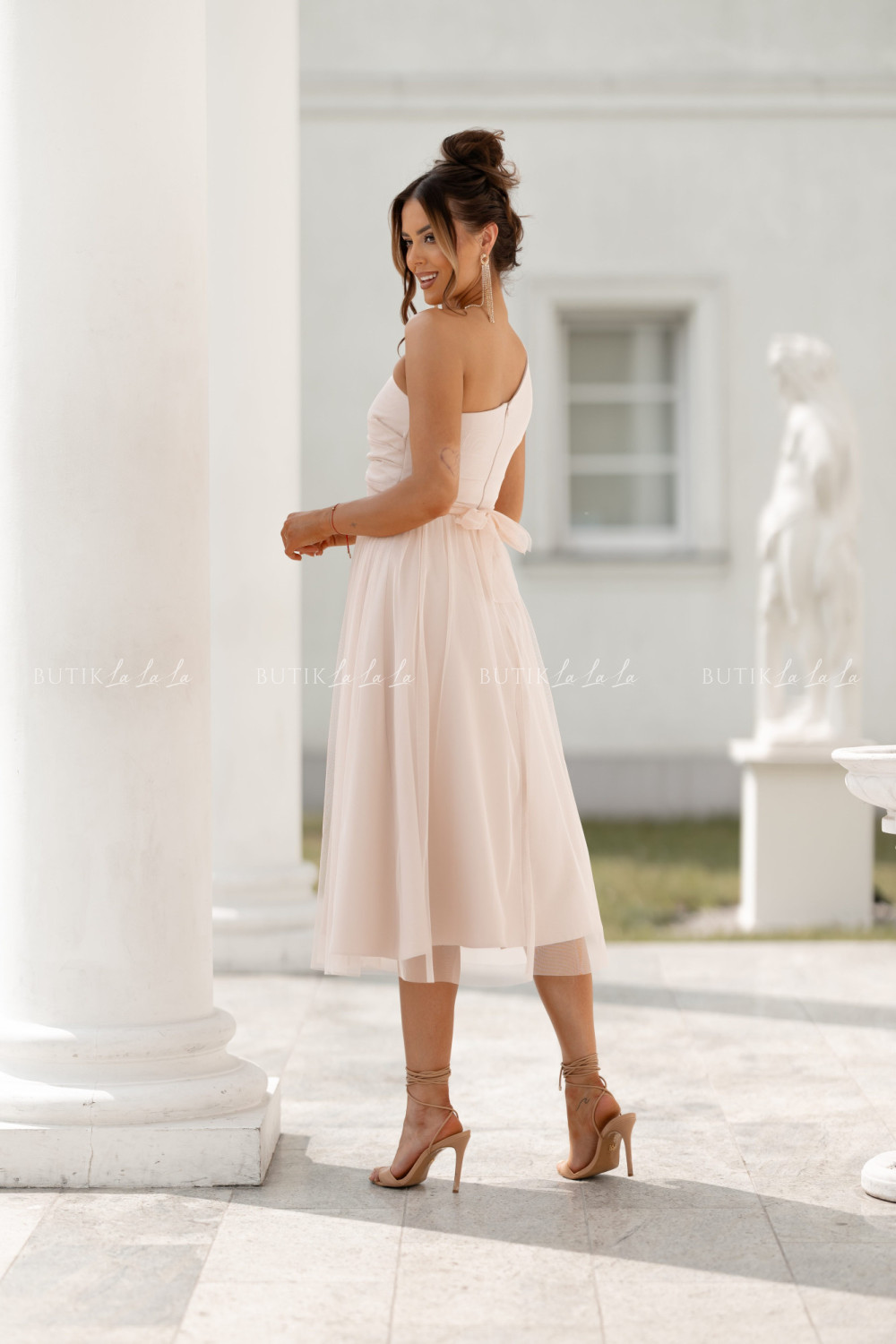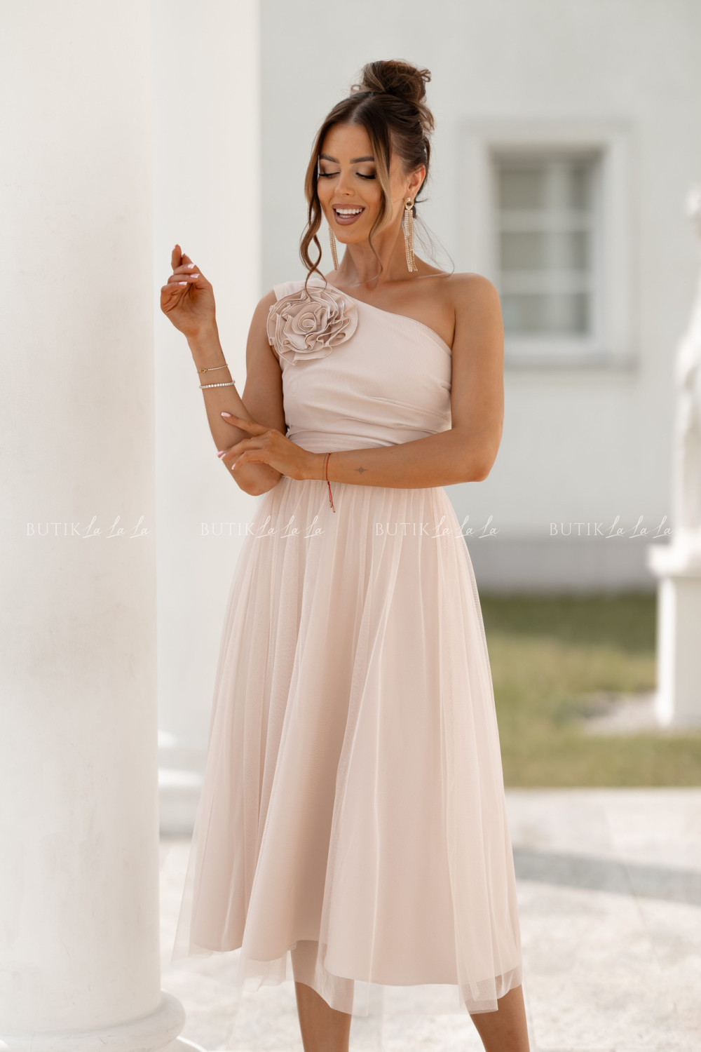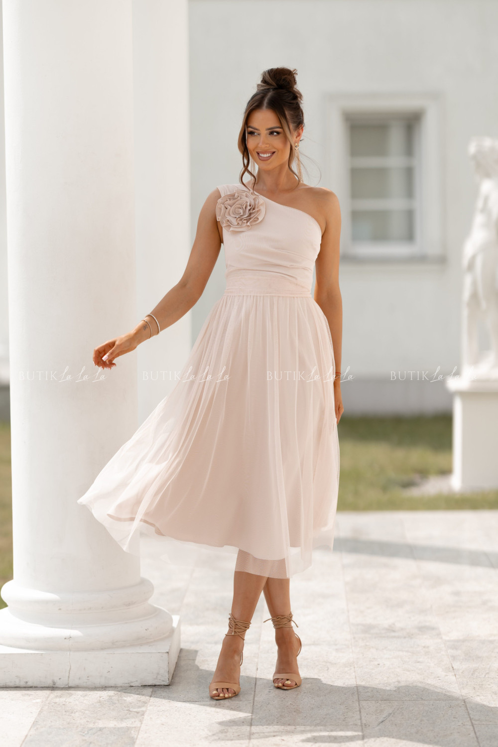 Sukienka z ozdobną różą beżowa Arisson