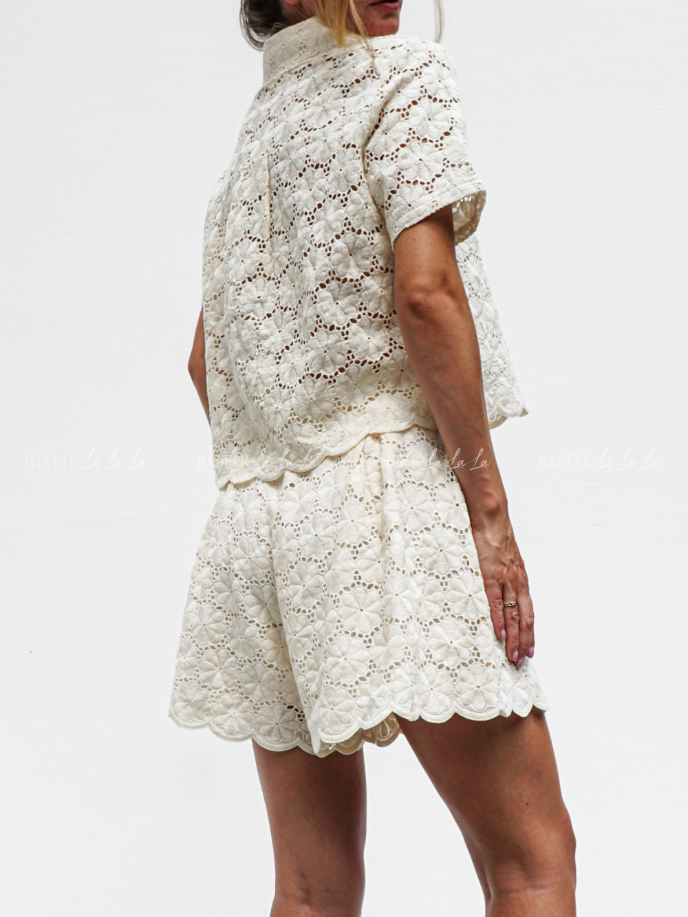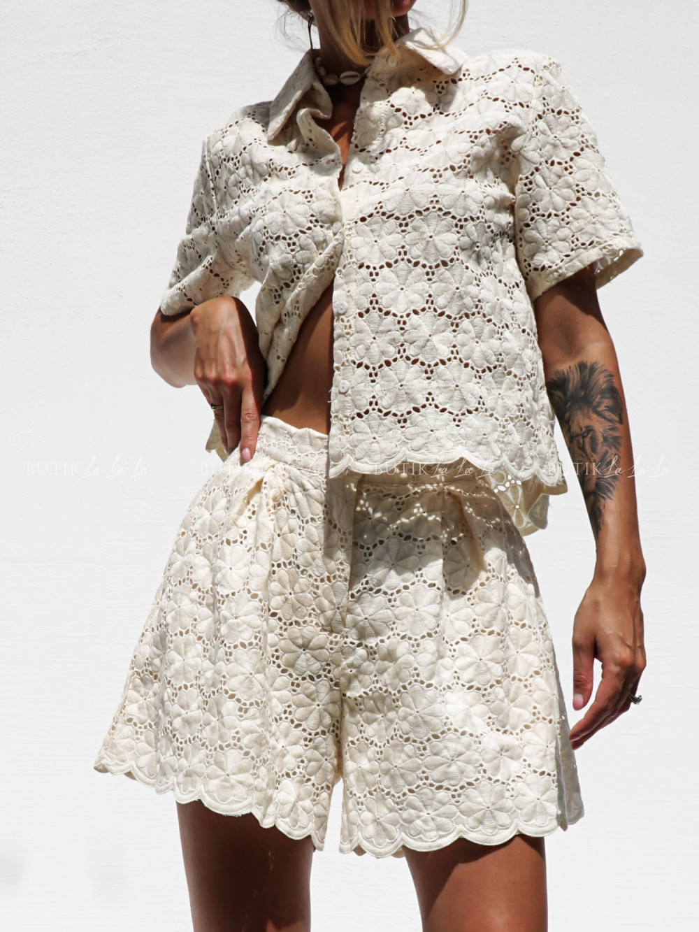 komplet kremowy ażurowy