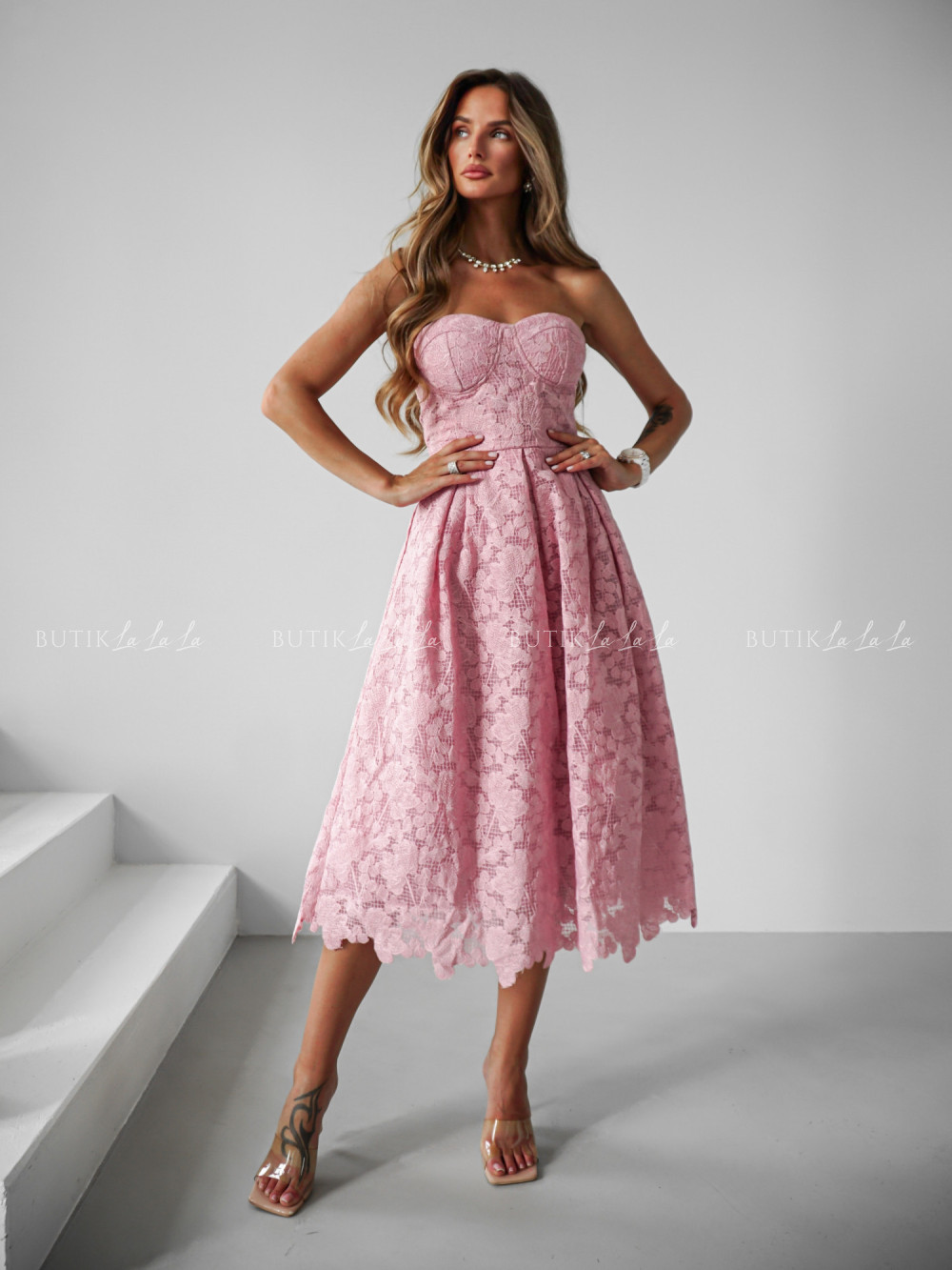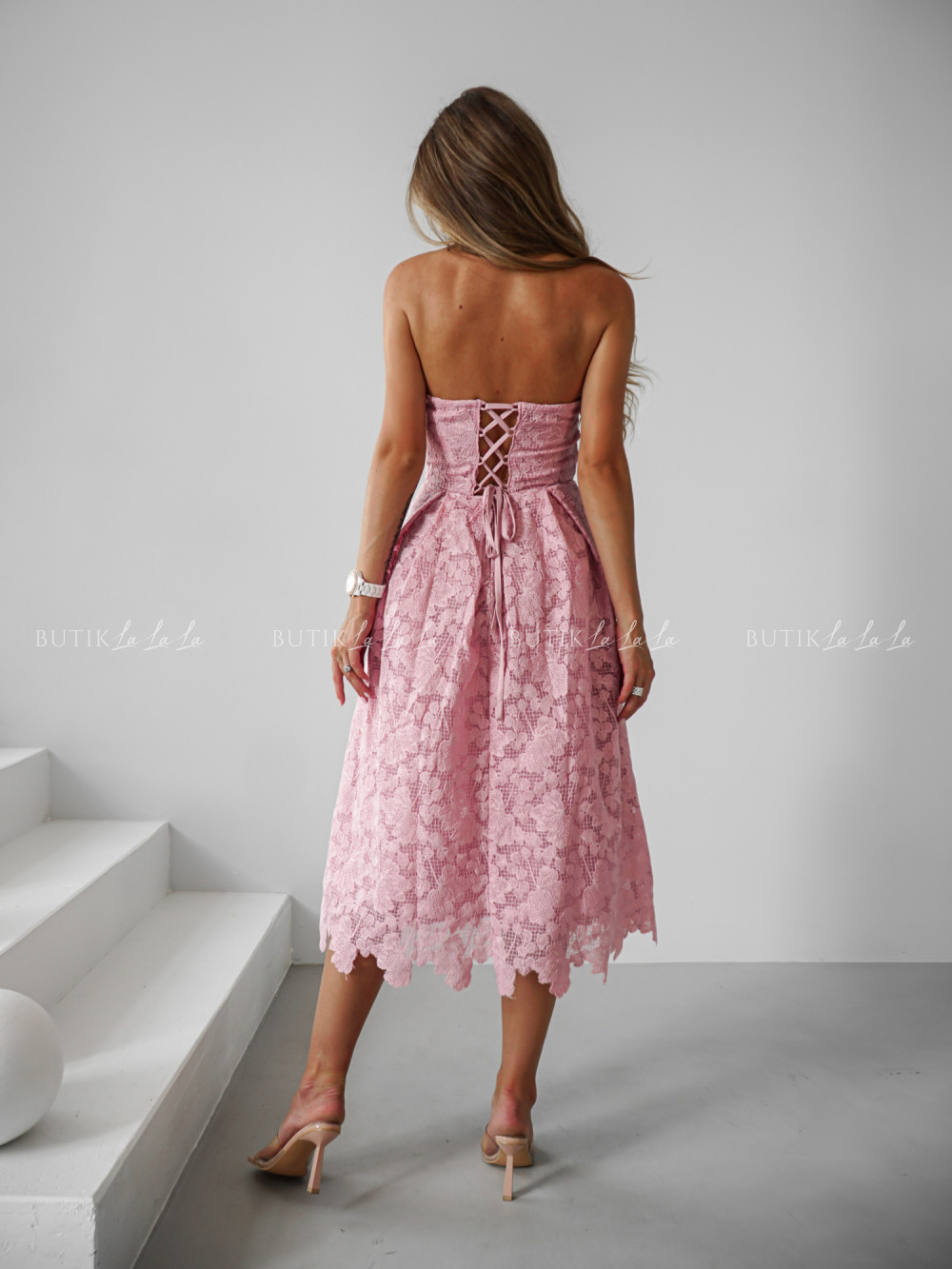 Sukienka midi pudrowa Barbare